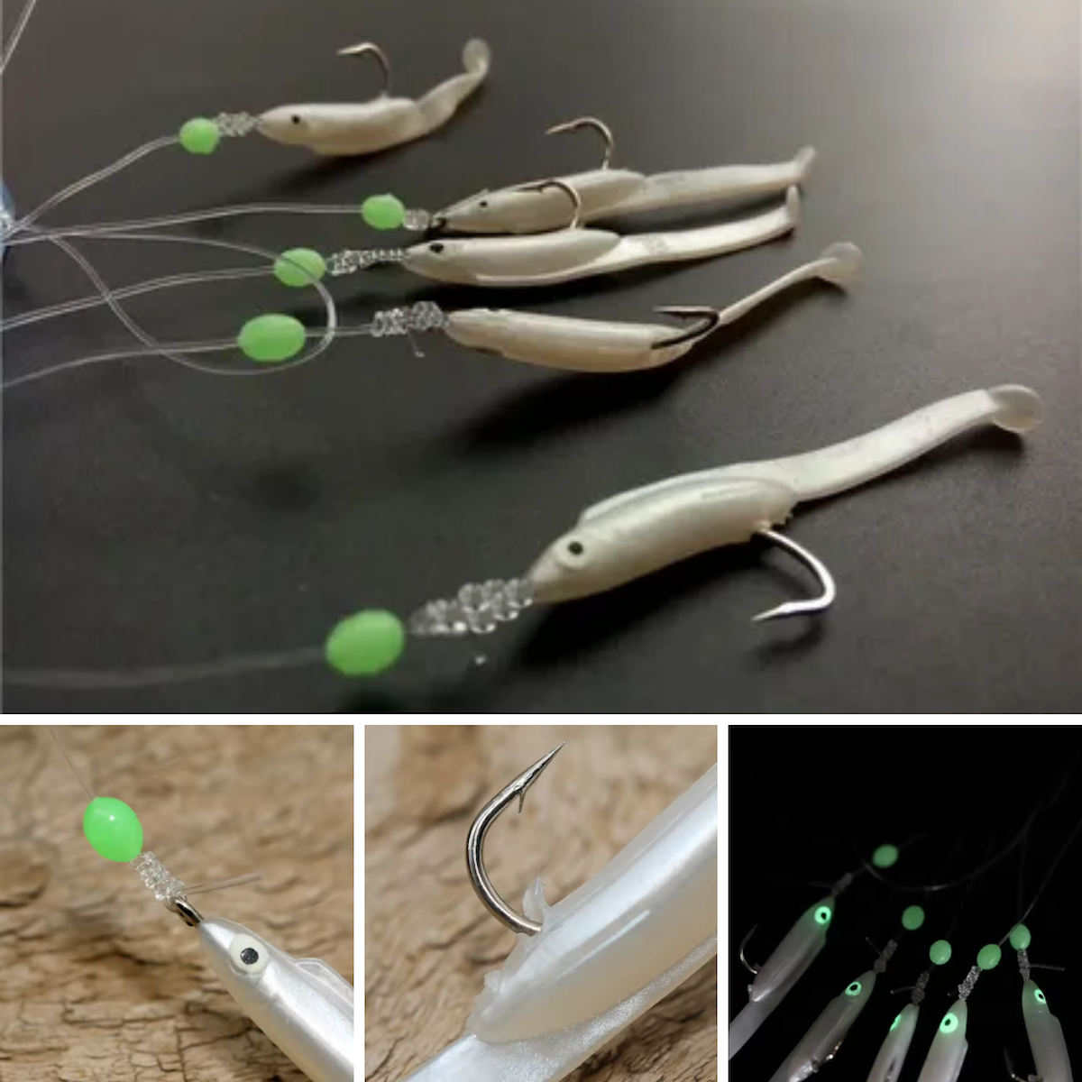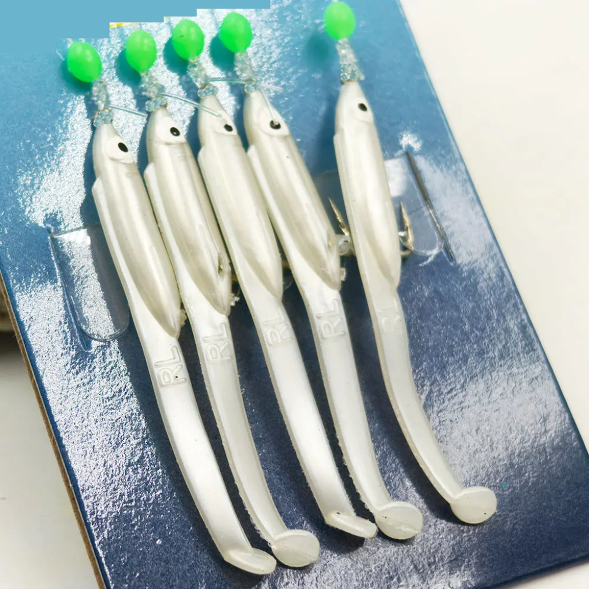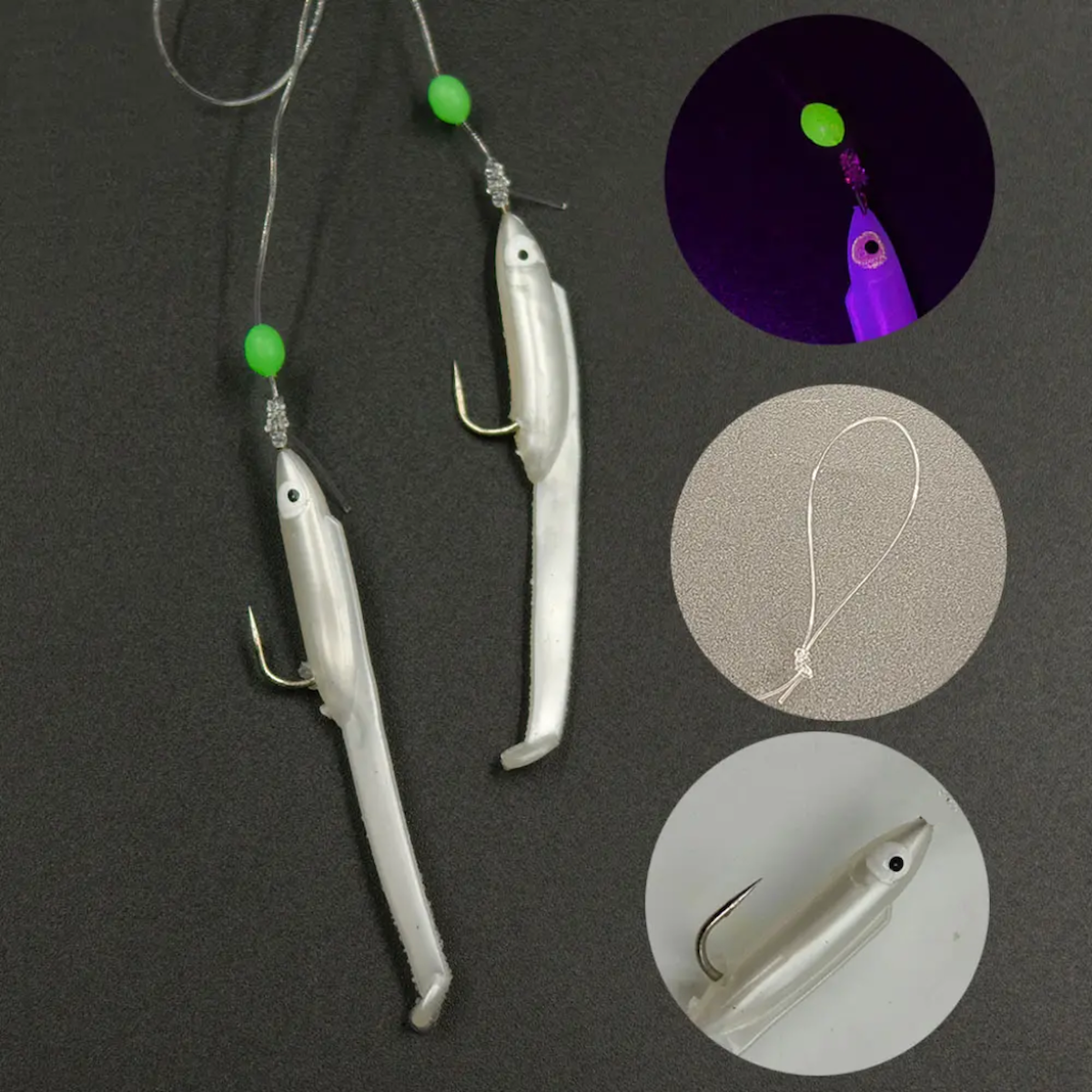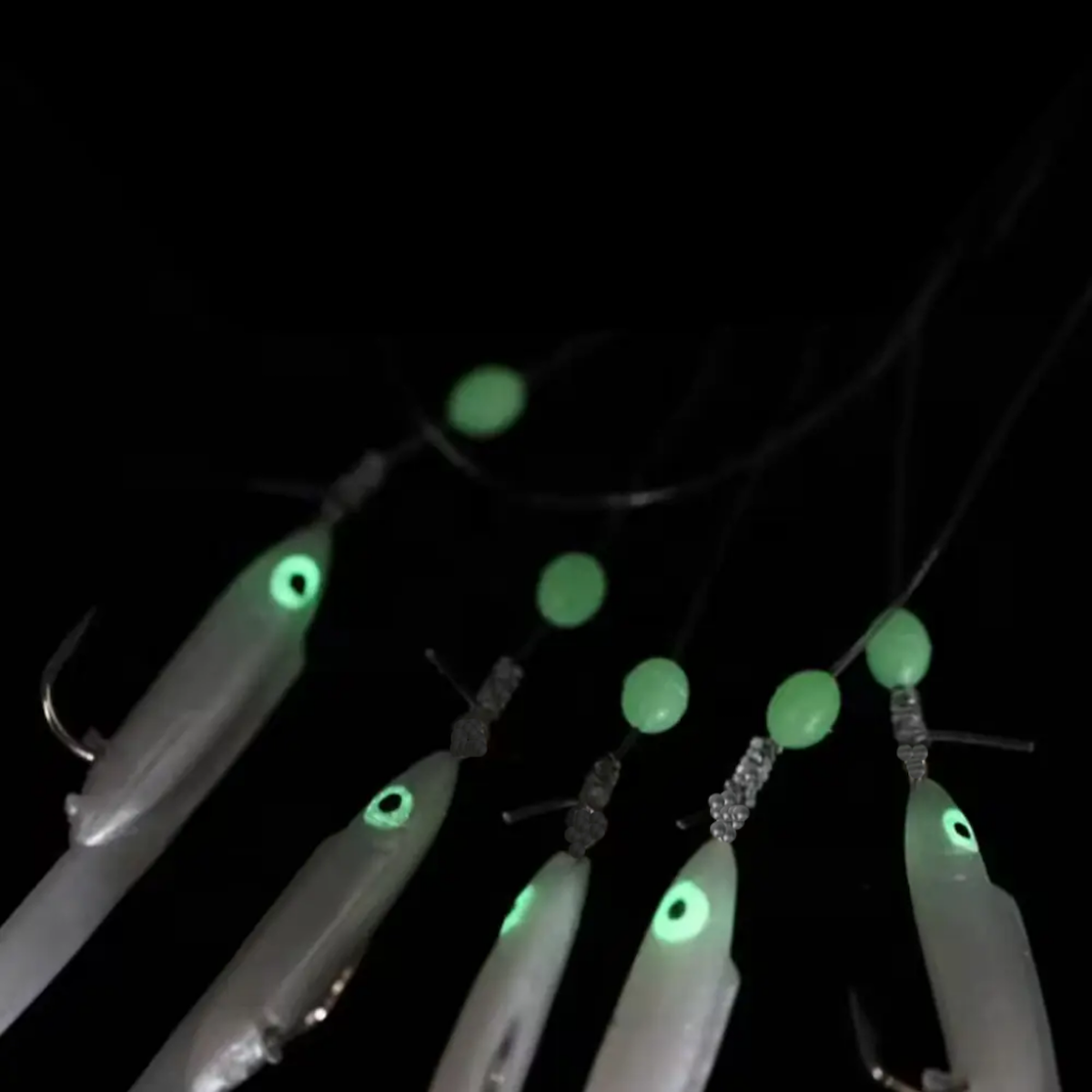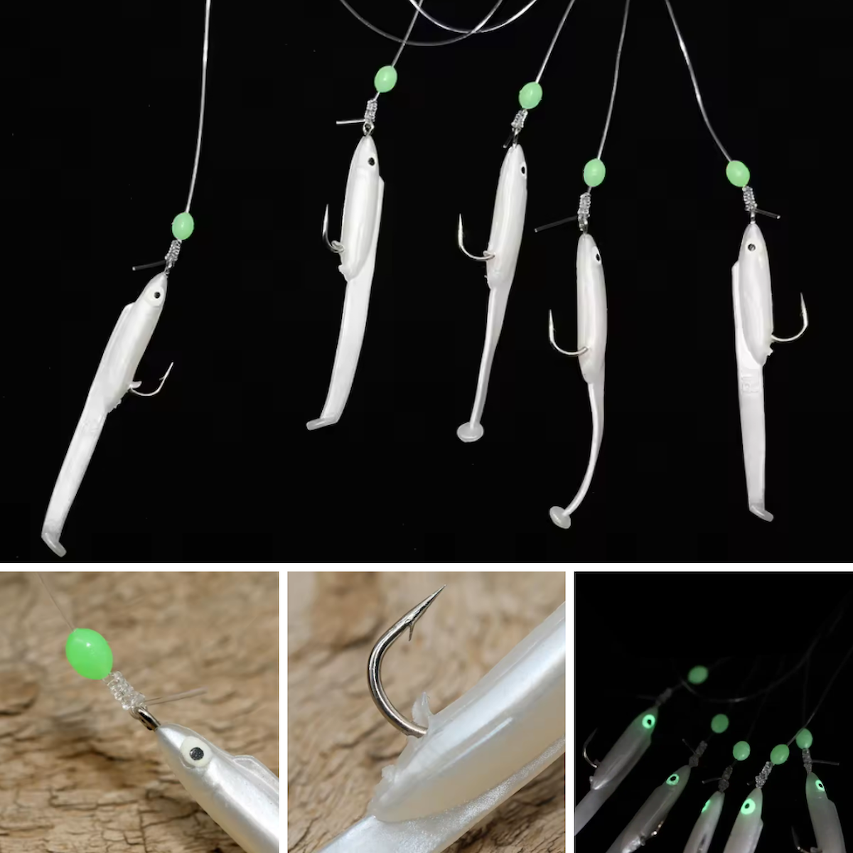 Eagenset Silikon Balıklı Çapari 5.5 Cm (2 Adet) Silikon At Çek Takımı Beyaz Fosforlu Glow Gözler ve Fosforlu Glow Boncuklu