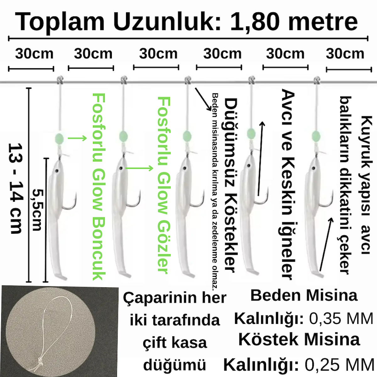 Köstek Misina Kalınlığı: 0,25 mm