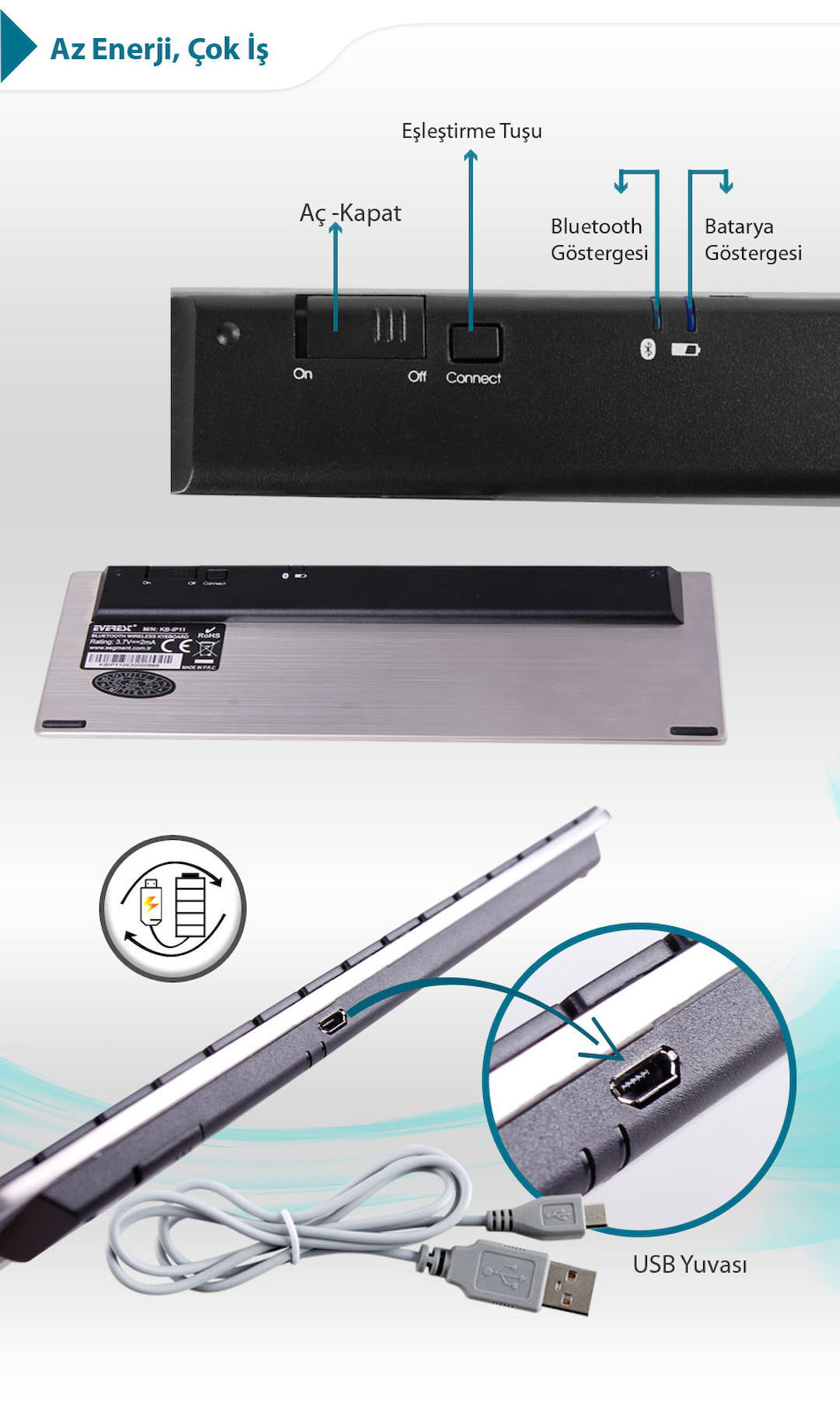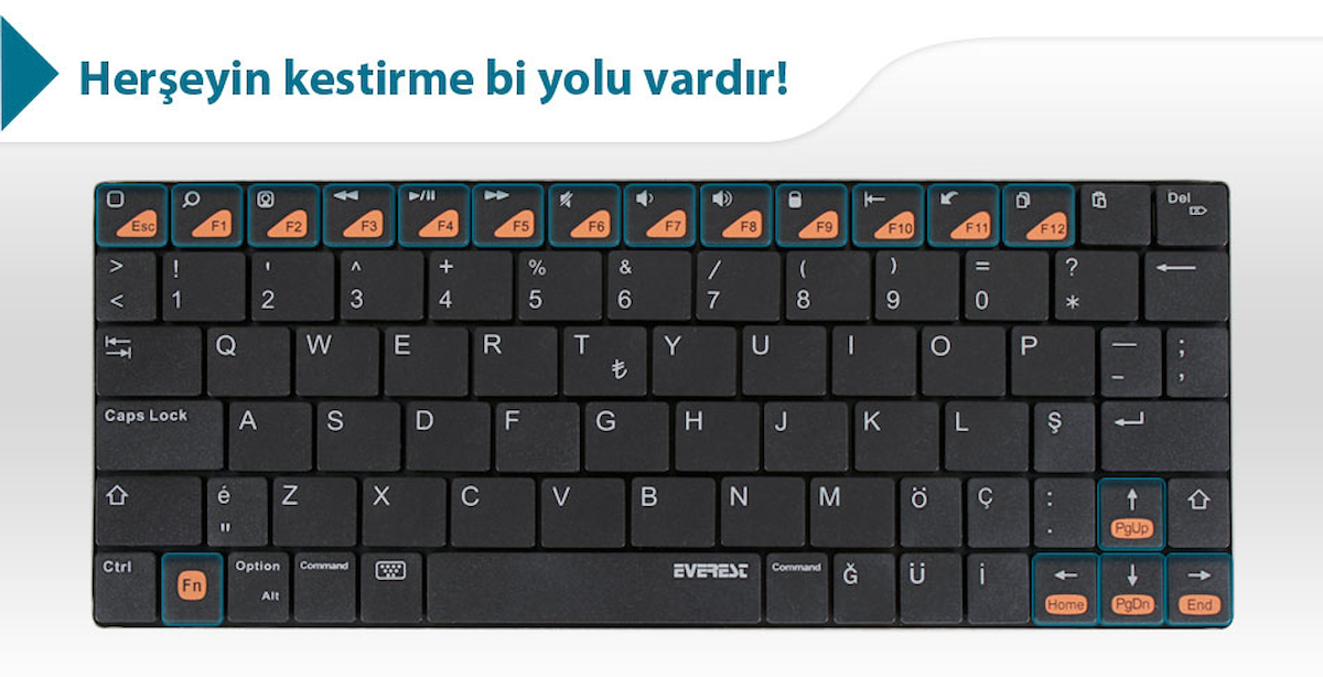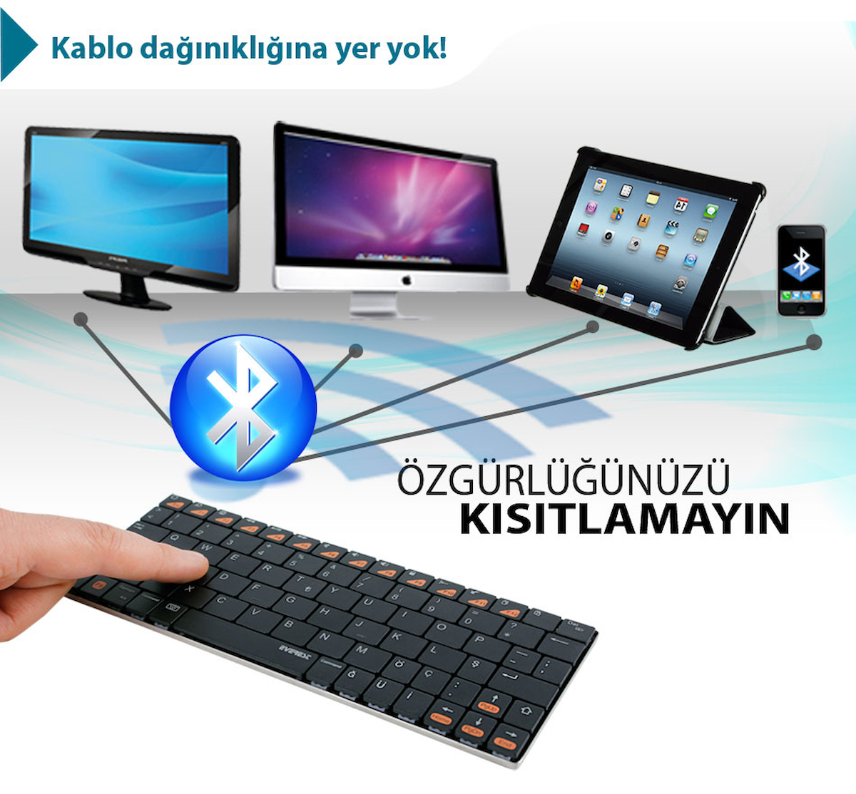 Bluetooth mini klavye sayesinde üzerinde bluetooth bulunan tüm yönetilebilir cihazları kontrol edebilirsiniz. Tek yapmanız gereken bluetooth özelliğini açıp, diğer cihaz ile eşleştirme yapmak. Eşleştirme yaptığınız cihazı istediğiniz şekilde yönetebilir ve Everest Bluetooth klavye kullanımın rahatlığını yaşayabilirsiniz.