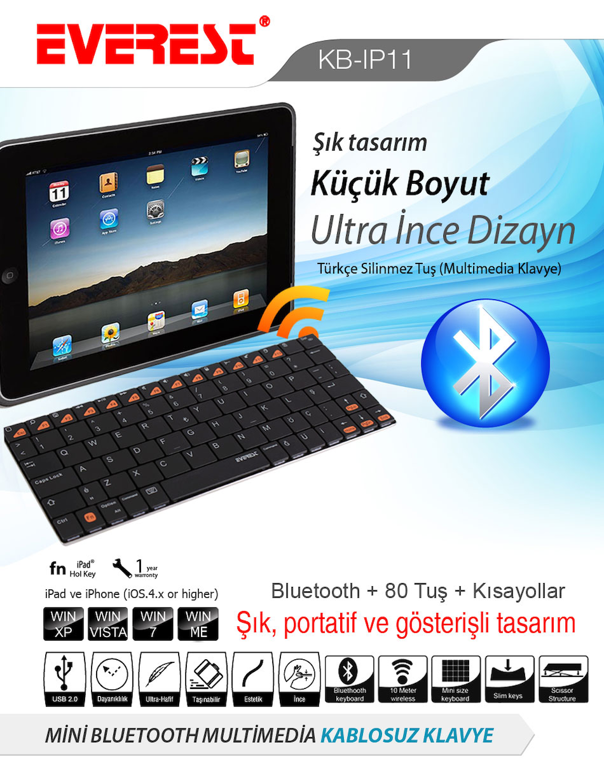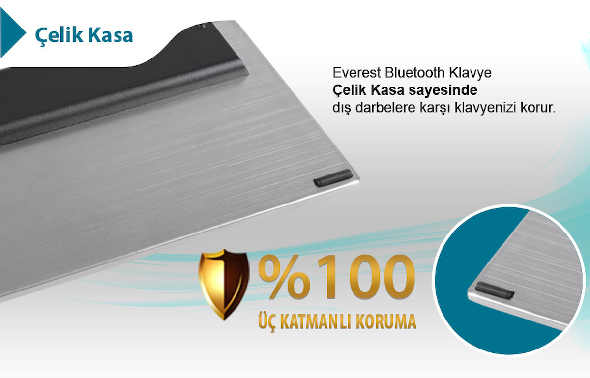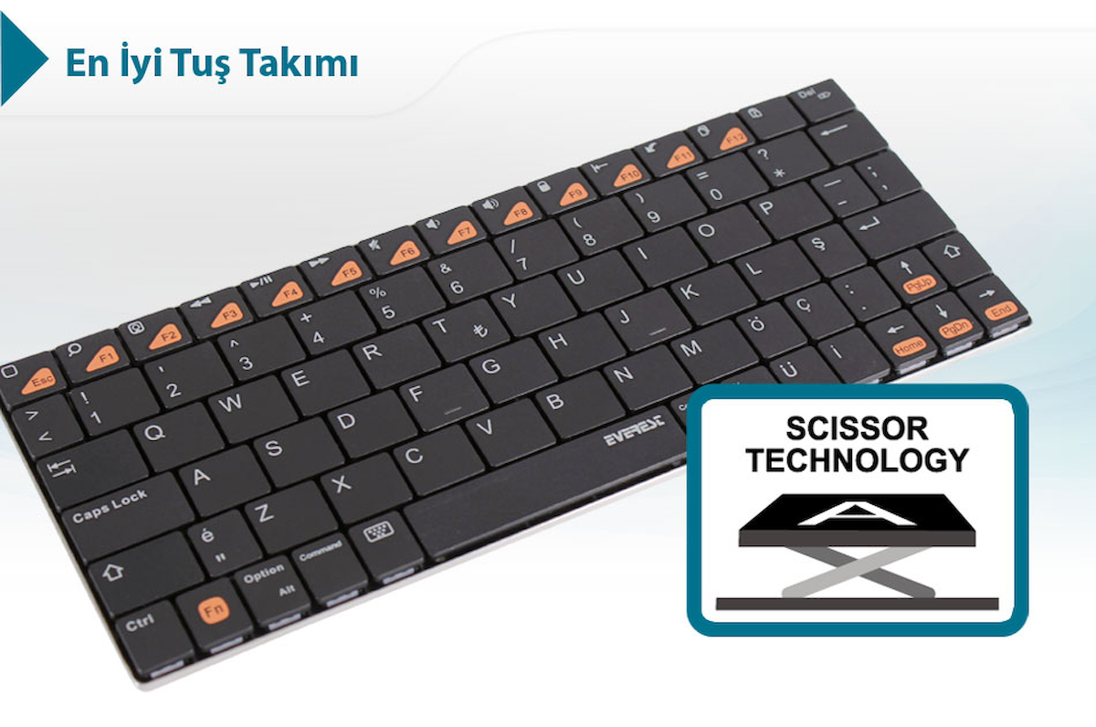 Everest Bluetooth Klavye rahat kullanımıyla olduğu gibi taşıma kolaylığıyla da size büyük kolaylıklar sağlayacak, kuş tüyü kadar hafifliğiyle alanının en iyisi!