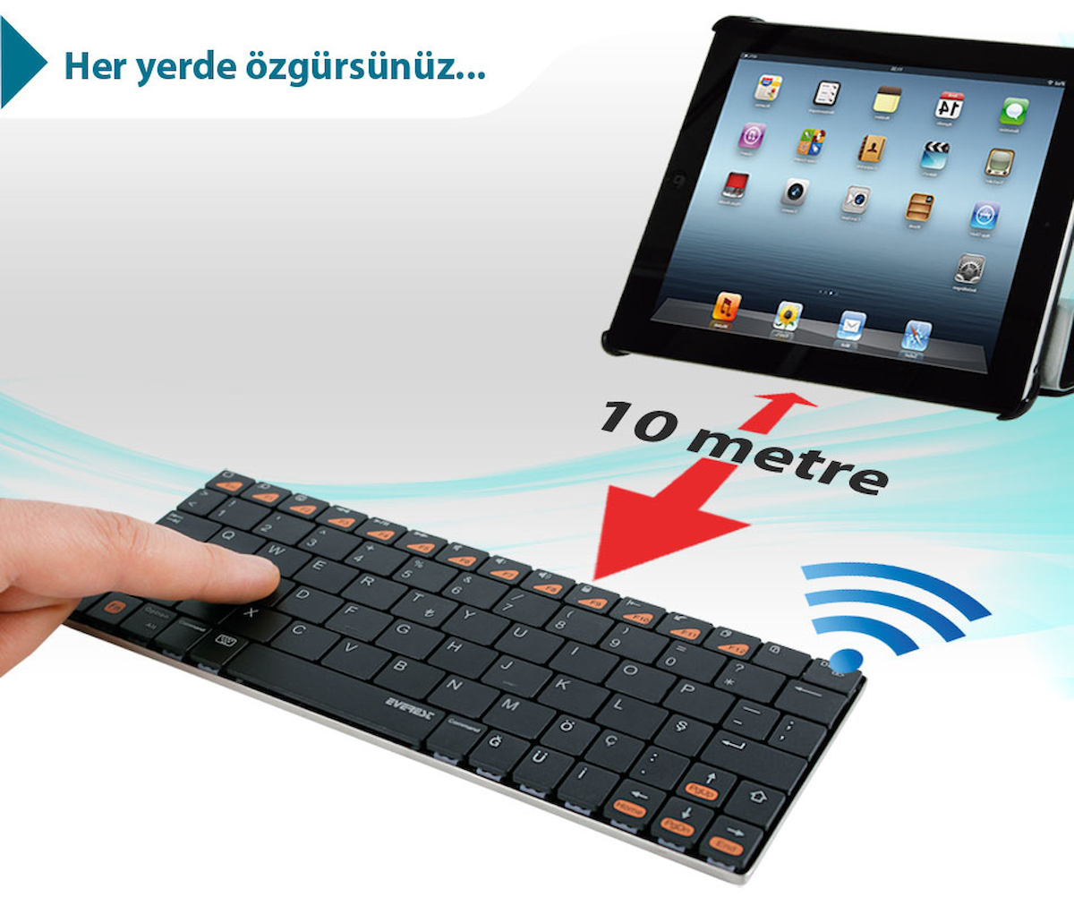 Mini Bluetooth Multimedya Klavye 10 metrelik Bluetooth kapsama alanıyla size özgürce hareket etme imkanı sağlıyor. Nerede olursanız olun istediğiniz her 10 metrelik açıdan cihazlarınızı çok kolay bir şekilde kontrol edebilirsiniz...