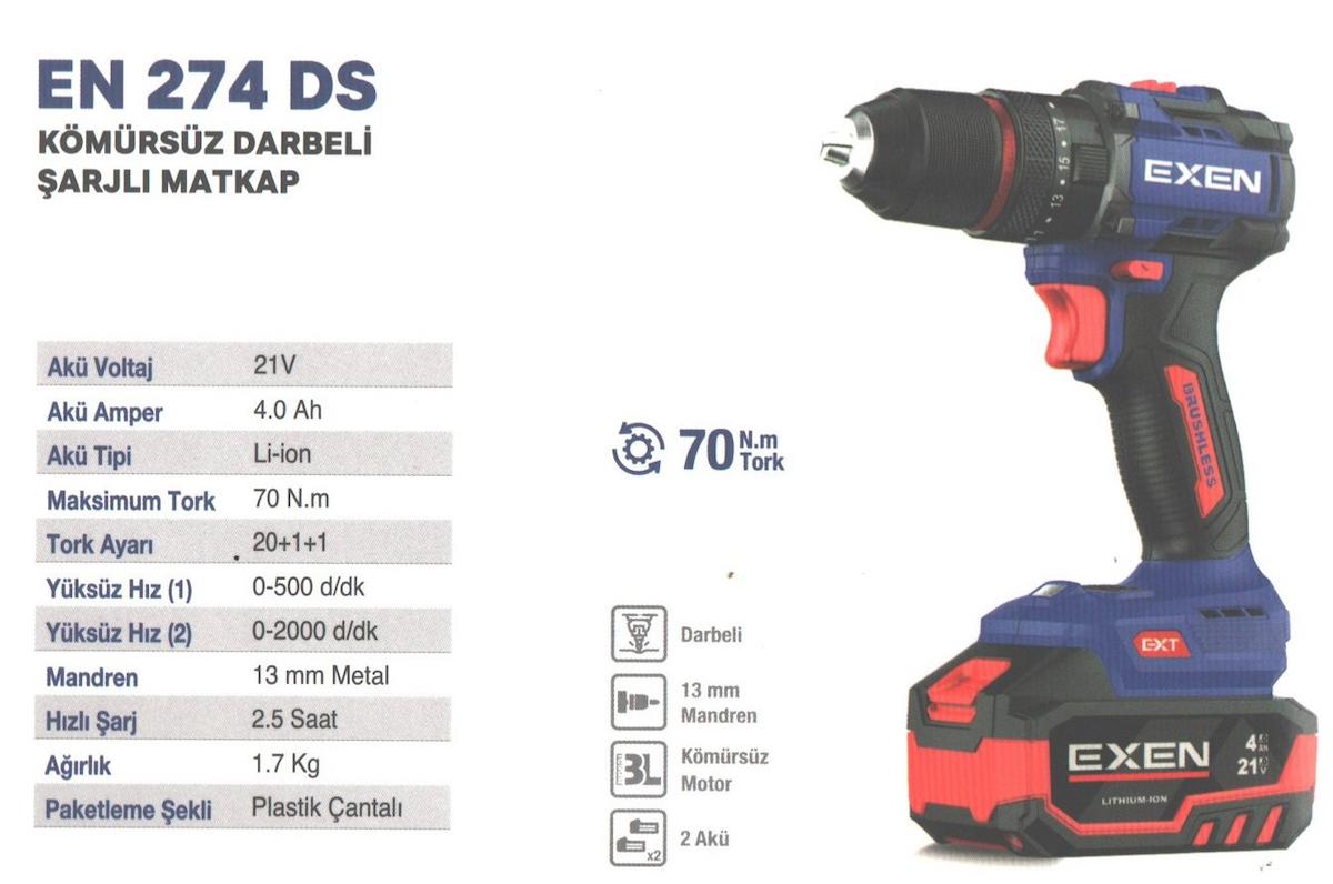Exen EN 274 DS Akülü Darbeli Kömürsüz Vidalama