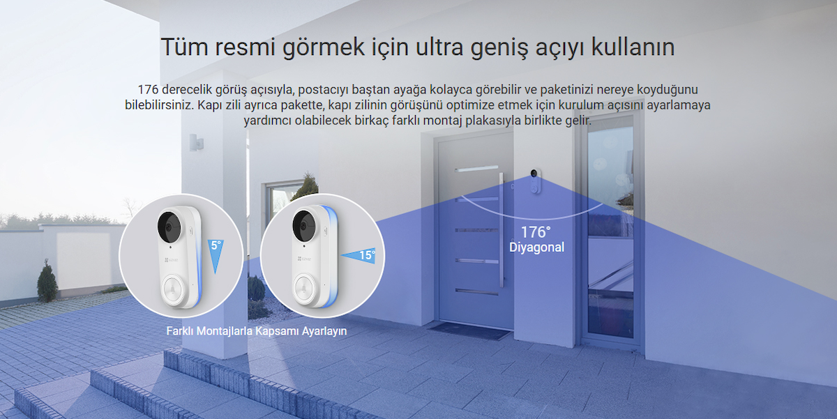 EZVIZ CS-DB2 WIFI 2K PİL İLE ÇALIŞAN VİDEO KAPI ZİLİ KİTİ BEYAZ