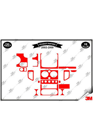 Peugeot Partner 2002 -2008 Torpido Konsol Trim Göğüs Maun Kaplama Set 16 Parça Kırmızı