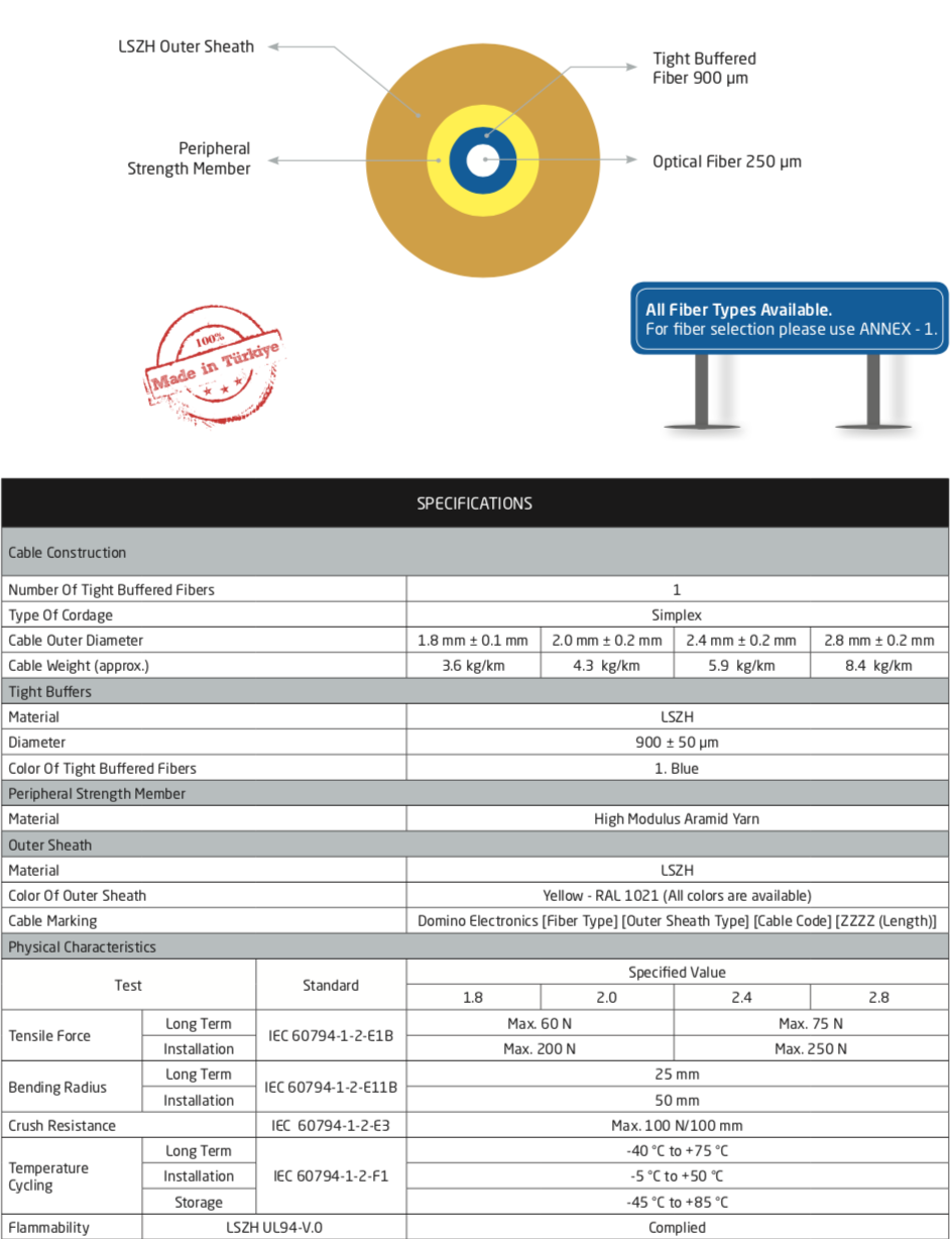 Fiber Optik Drop Kablo SM SX - Sarı Renk - 1000m 2.0mm