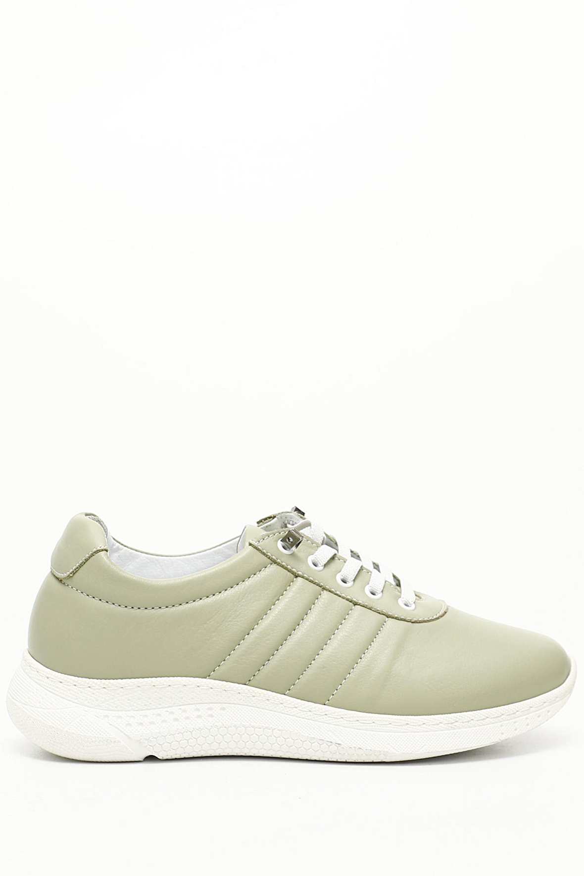 FISTIK YEŞİLİ Gön Hakiki Deri Yuvarlak Burun Dolgu Taban Bağcıklı Kadın Sneaker 42215