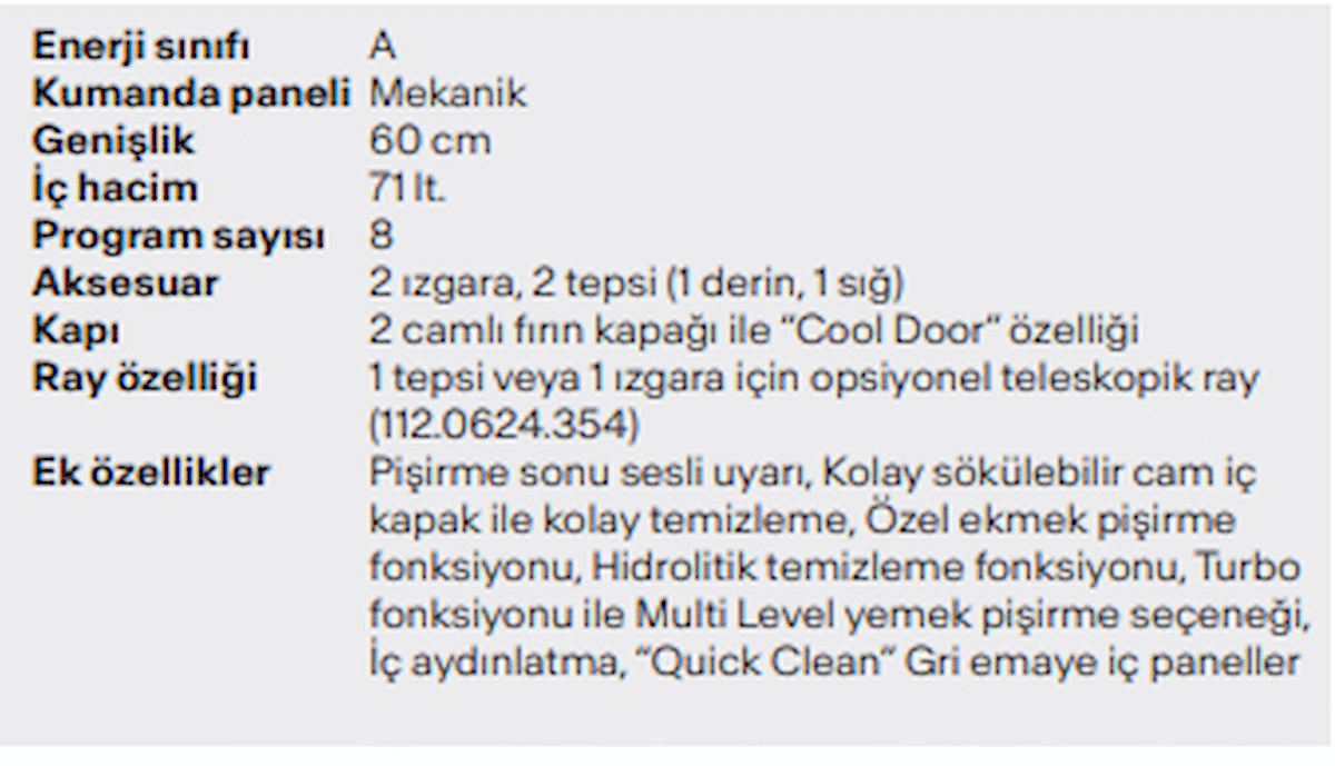 Set İçeriği Davlumbaz - Fırın - Ocak