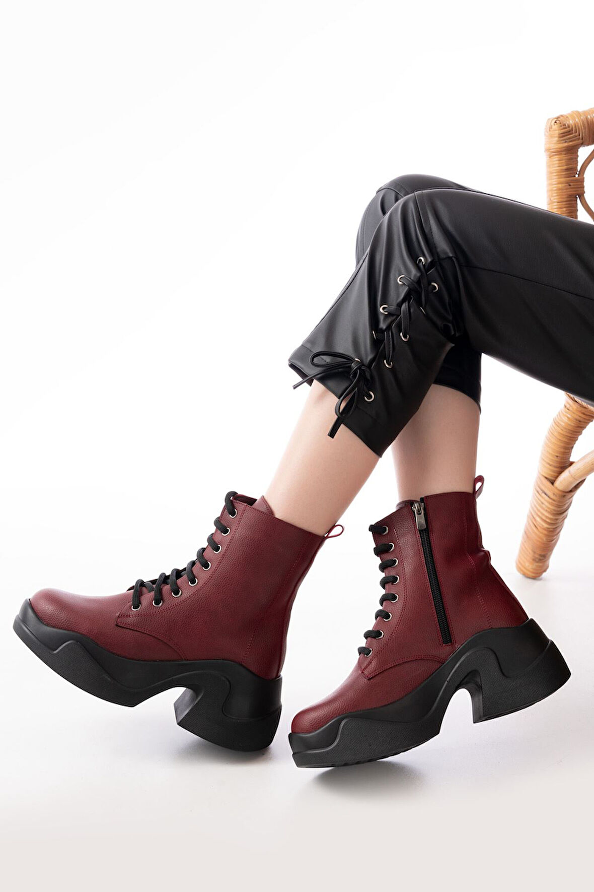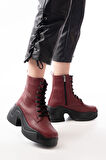 FZ-2550 Bordo Yüksek Tabanlı Bağcıklı Fermuarlı Günlük Kadın Bot