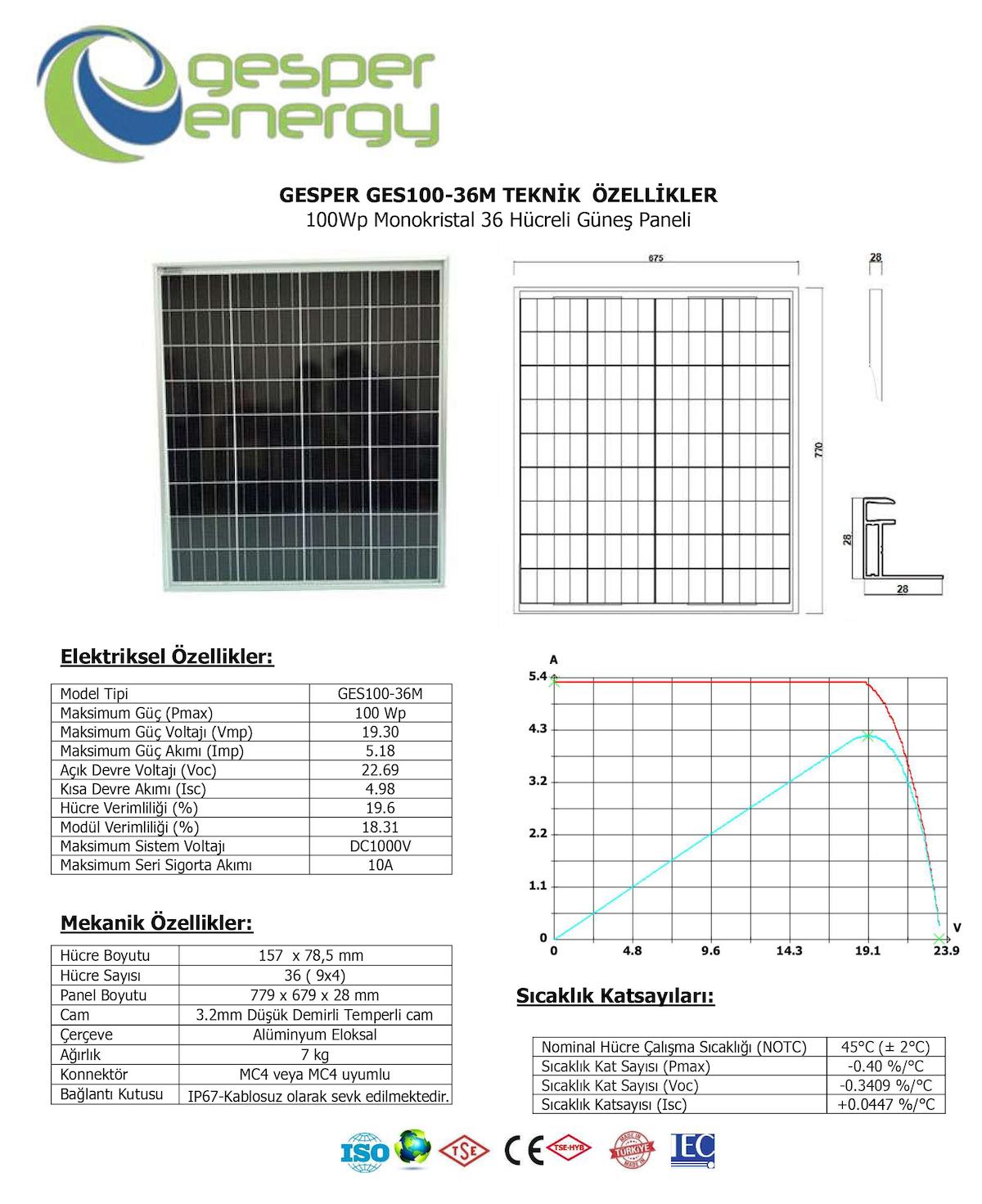 100 W değeriyle yenilebilir enerjiye güçlü performansla erişebilmeniz amacıyla kullanışlılık vadeder.