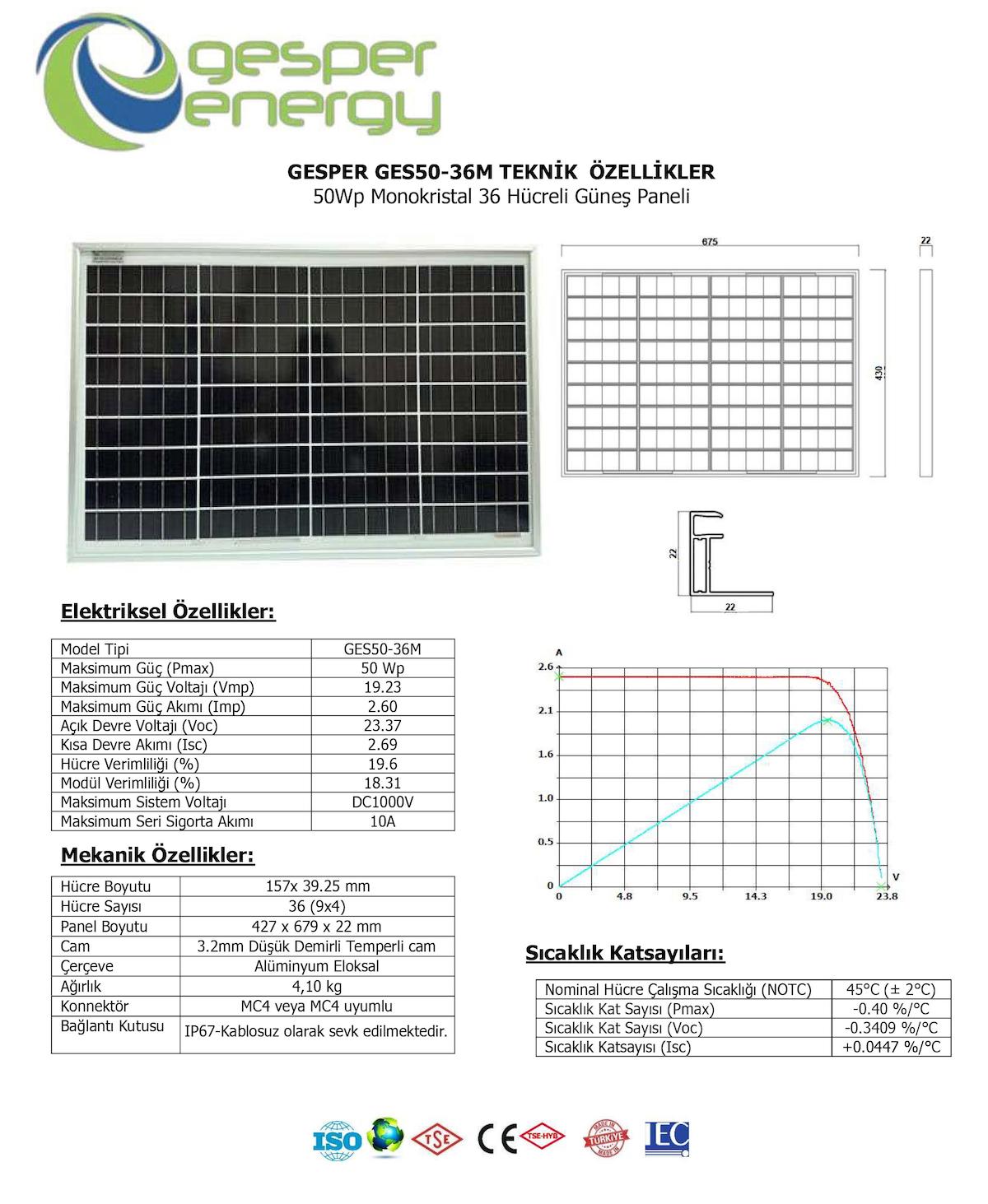 50 W değeriyle yenilebilir enerjiye güçlü performansla erişebilmeniz amacıyla kullanışlılık vadeder.