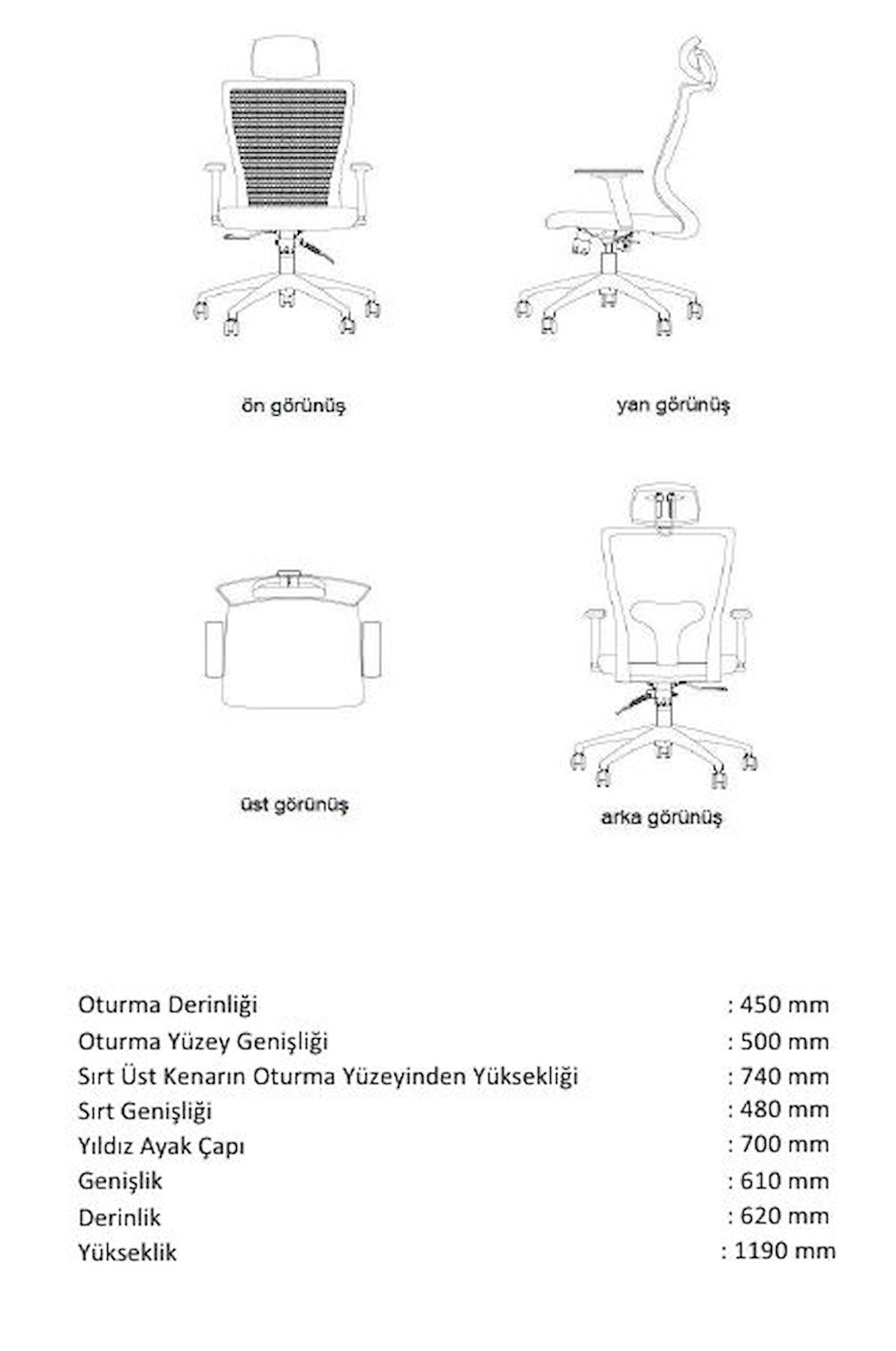 Siyah Kumaş Oturak ve Sırt Siyah Fileli