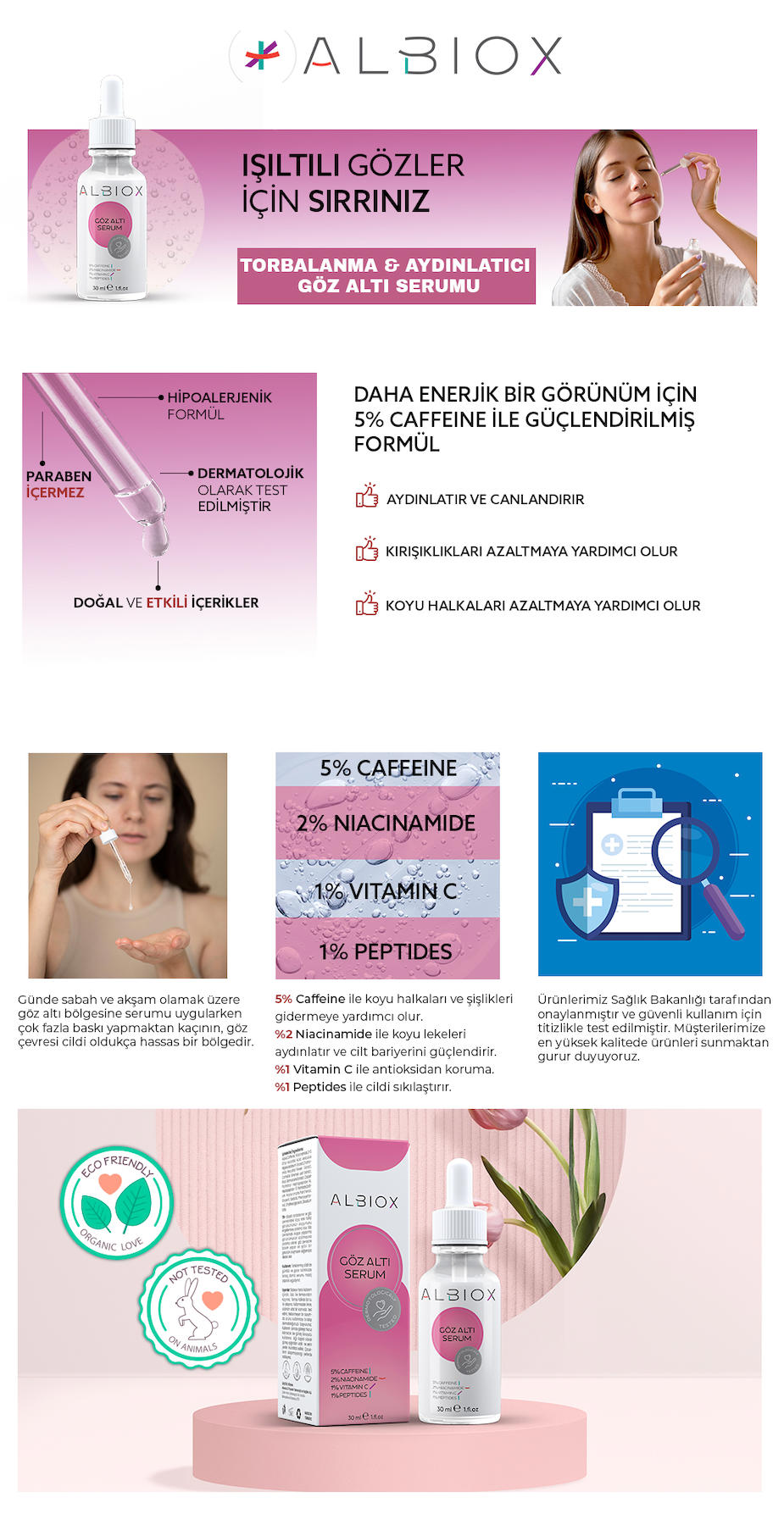 Göz Altı Torbalarına Karşı Serum(caffeine + Niacinamide + Vitamin C + Peptides)30 Ml