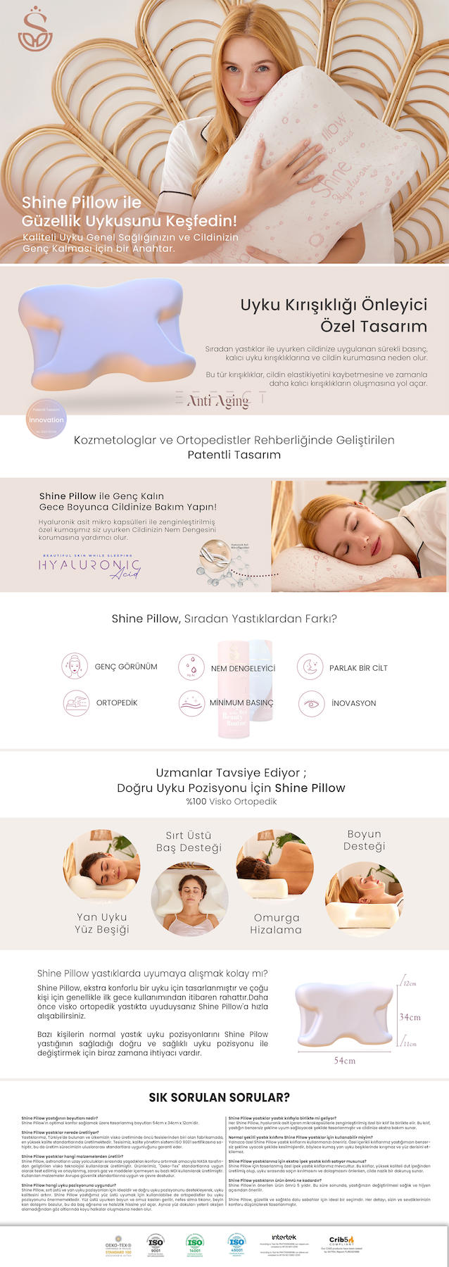 Shine Pillow Güzellik Yastığı Kırışıklık Önleyici Hyaluronik Asit Içerikli Anti Aging Ortopedik Visko Yastık - Kaliteli Uyku Yastığı - %100 Visko - Lüks Yastık - Kırışıklık önleyici - Ortopedik Visco doğru uyku pozisyonu ve kaliteli uyku