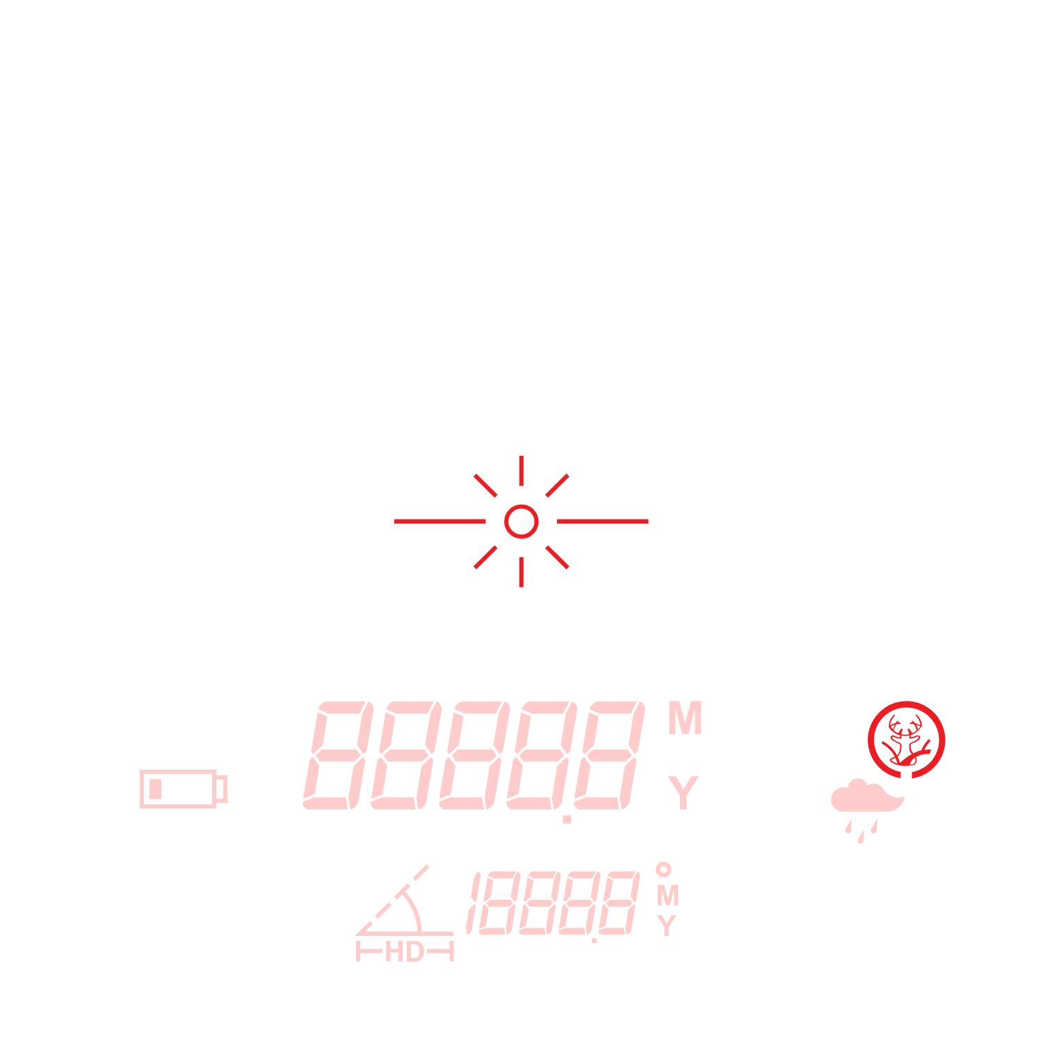 Hawke Endurance LRF, hedefinize olan görüşü her zamankinden daha net hale getirmek için yüksek ışık geçirgenliğine sahip optikler ve kırmızı renkli OLED ekran kullanır.