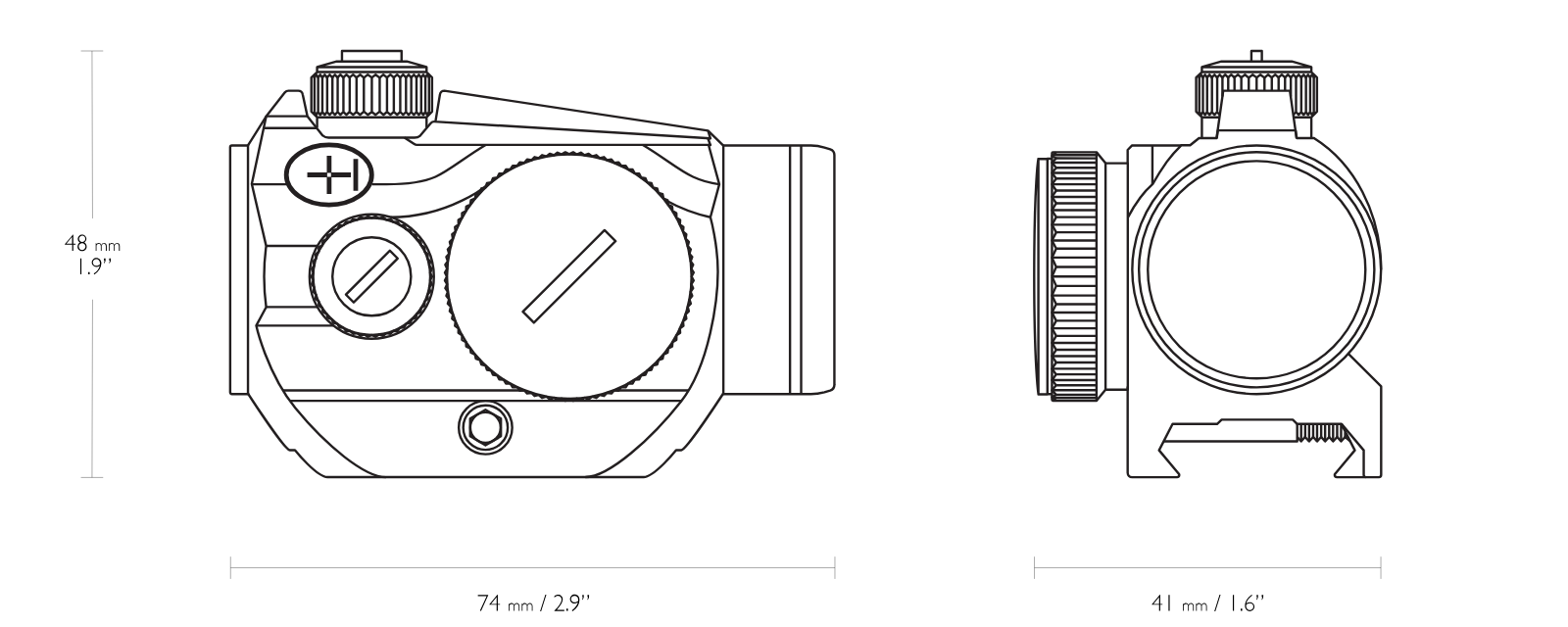 Küçük boyutlu 20 mm objektif lensi, hedef tabancaları, havalı tüfekler ve rimfire'larda kompakt boyut ve ağırlık için idealdir.