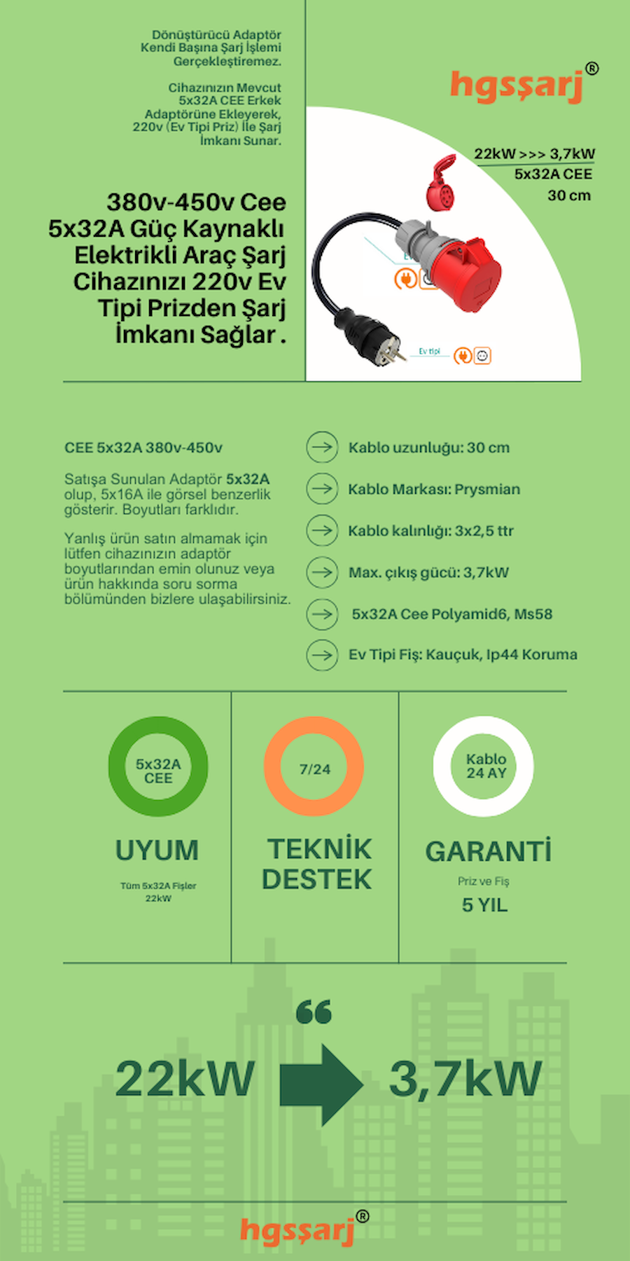 Hgsşarj 5X32A 380V-450V ile Çalışan Cihazınızı, 220V Ev Tipi Prize Bağlar. Elektrikli Araç Şarj Kablosu Dönüştürücü Adaptör