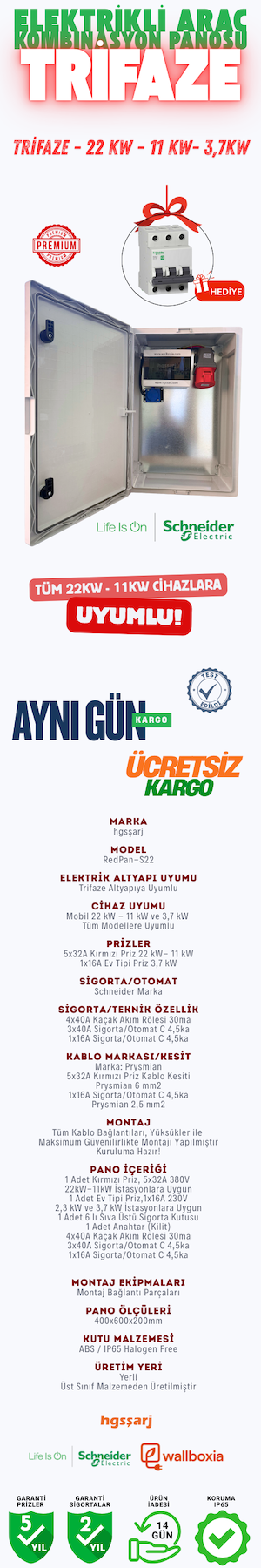 Hgsşarj "RedPan" 22kW Elektrikli Araç Kombinasyon Panosu Sch neider Sigorta Grubu
