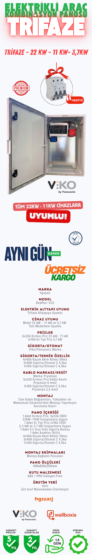 Hgsşarj "RedPan" 22kW Elektrikli Araç Kombinasyon Panosu VIKO Sigorta Grubu