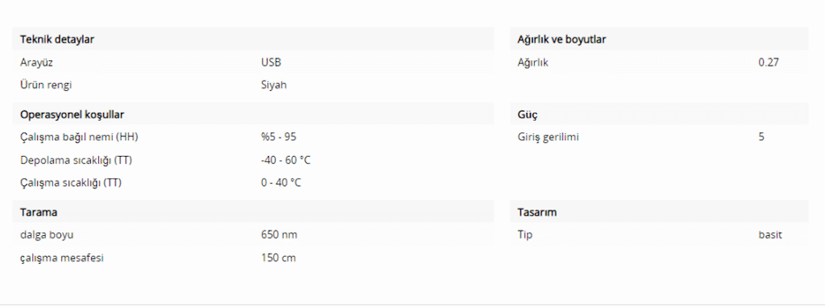 Ürün Özellikleri