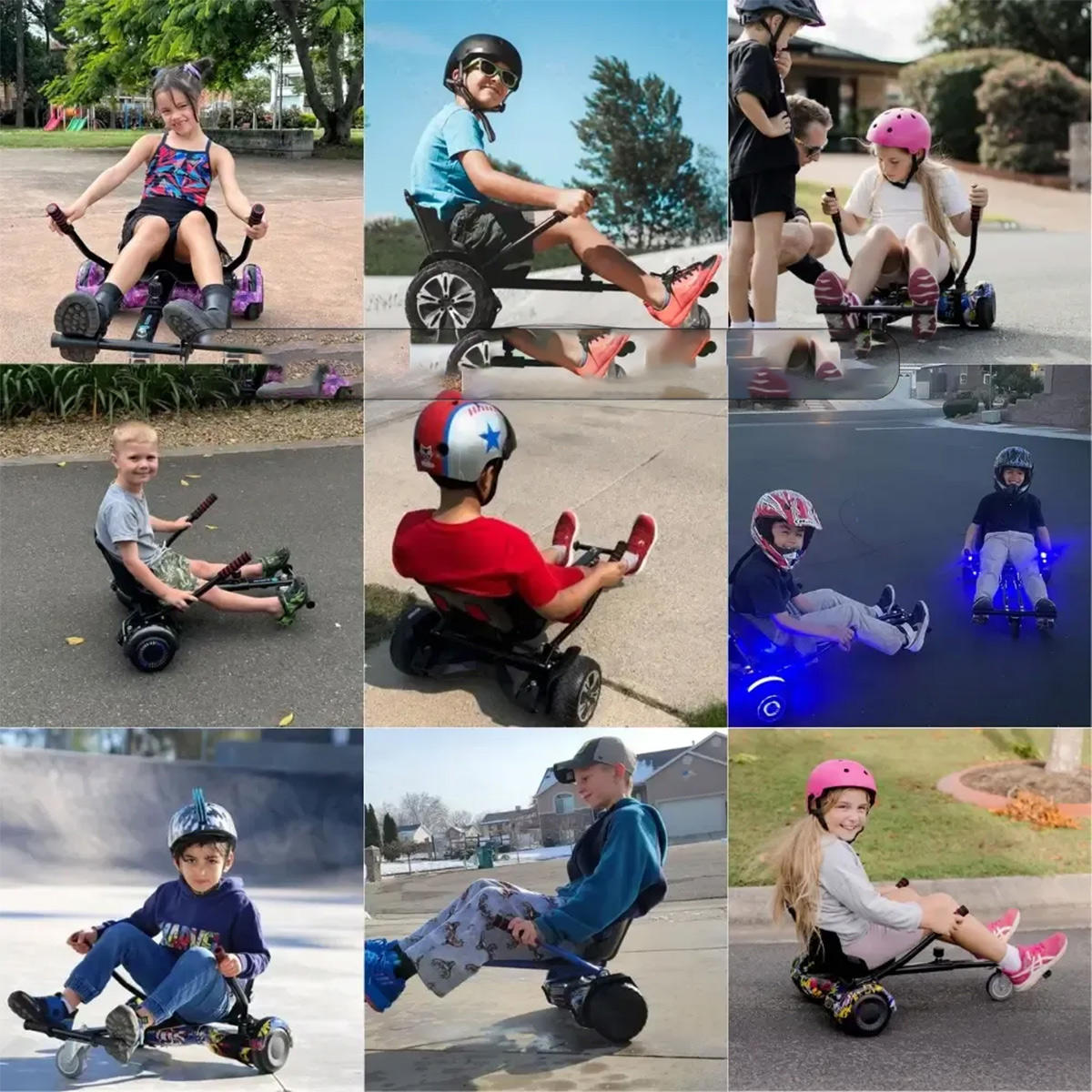 Elektrikli kaykayhoverboard aksesuarı hoverboardınızı Go-Kart gibi kullanın 6,5 inch - 8 inch -10 inch tüm modellere uyumlu hoverboard sahibi iseniz ve hoverboardınız artıkilk sefer ki gibi heyecan vermiyorsa, bu yeni eklenti aparatı ile hoverboardunuzubir go kart aracına çevirin ve eğlencenin tadını çıkarın. Ürün tarafınızademonte olarak gönderilmektedir. Kurulumu basit olup kurulum için gerekli tümekipman (anahtar, alyan vs) ekipmanları paket içinde mevcuttur.