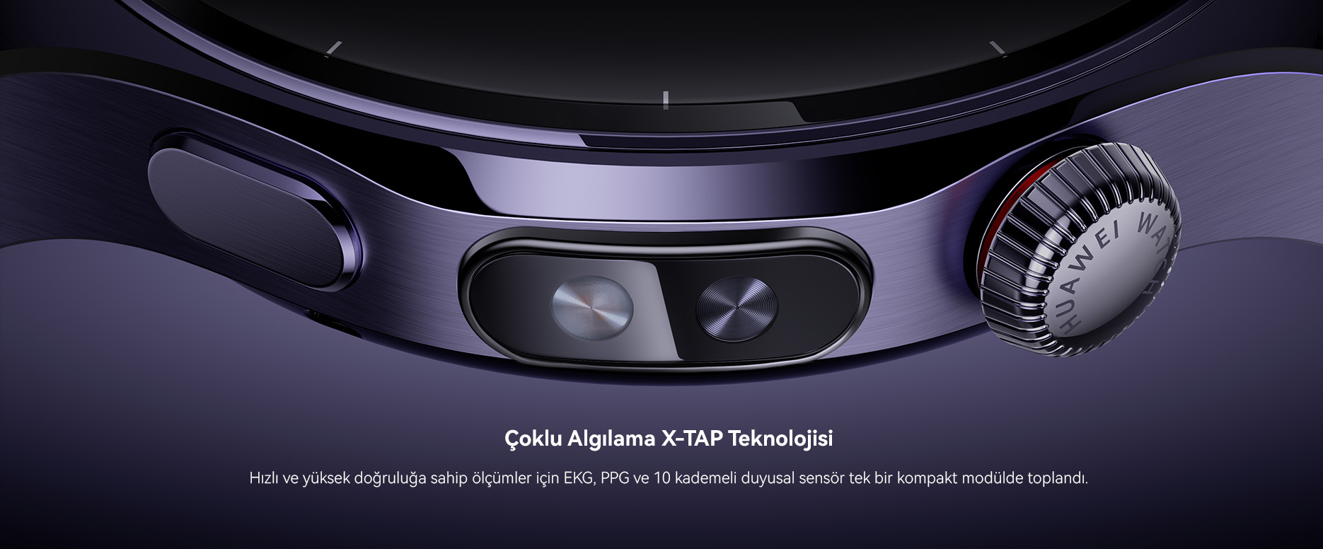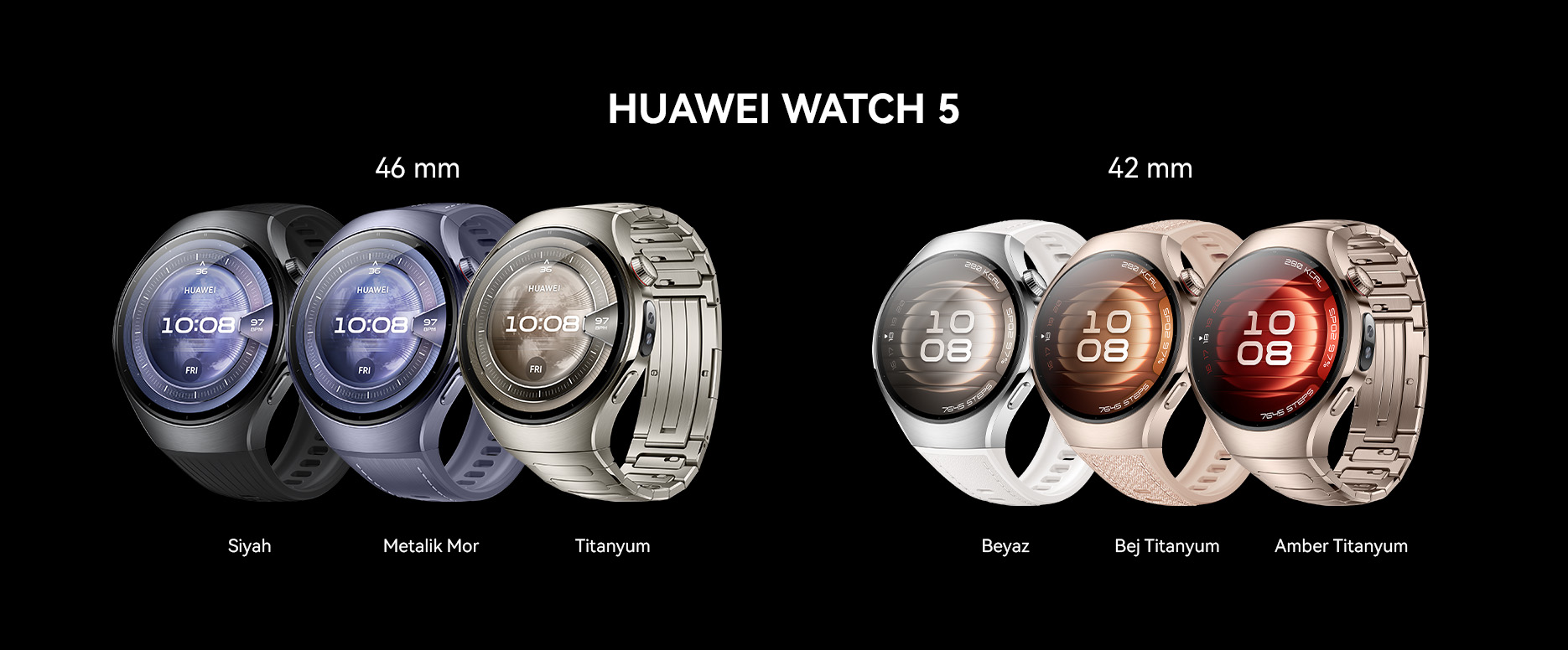 4. HUAWEI Watch5 46 mm'nin yalnızca Gümüş, Kahverengi ve Mor sürümleri havacılık sınıfı titanyum alaşımlı kasa ile birlikte gelir.