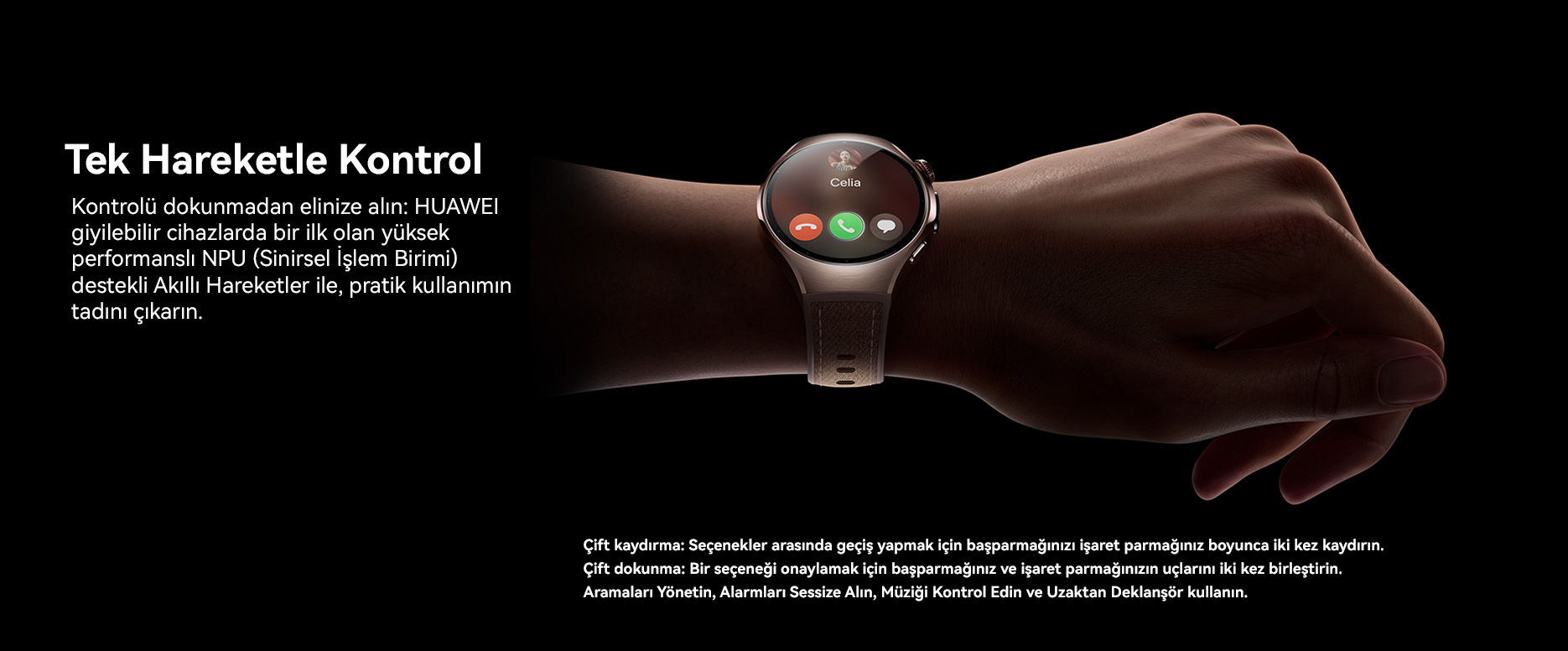 18. Bu özellik varsayılan olarak devre dışıdır ve hareket eğitiminin tamamlanmasının ardından otomatik olarak etkinleştirilecektir. Bu özelliği kullanırken, saatinizin alt kısmının bileğinize yakın olduğundan emin olun. Koşu veya bisiklet sürme gibi yüksek yoğunluklu egzersizler sırasında ya da bilekte dövme bulunması durumunda, saat hareketleri algılayamayabilir. Kullanım sırasında oluşacak gerçek durum esas alınır.