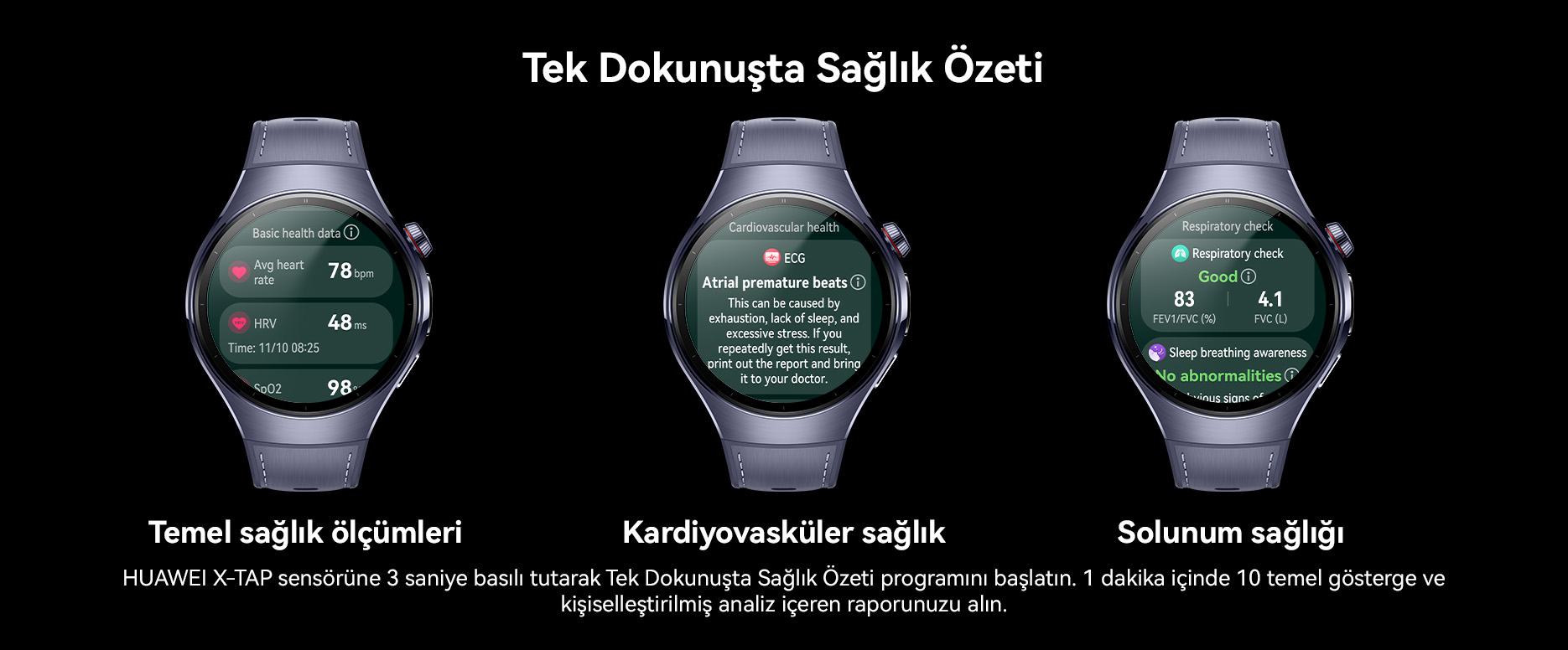 13. EKG özelliği 18 yaş ve üzeri kişiler tarafından kullanılmak üzere tasarlanmıştır ve herhangi bir tıbbi teşhis veya tedavinin yerini alması amaçlanmamıştır. Bu özelliğin kullanımı sırasında elde edilen veriler yalnızca kişisel referans içindir. EKG'yi kullanmadan önce lütfen Kullanım Talimatını dikkatlice okuyun.