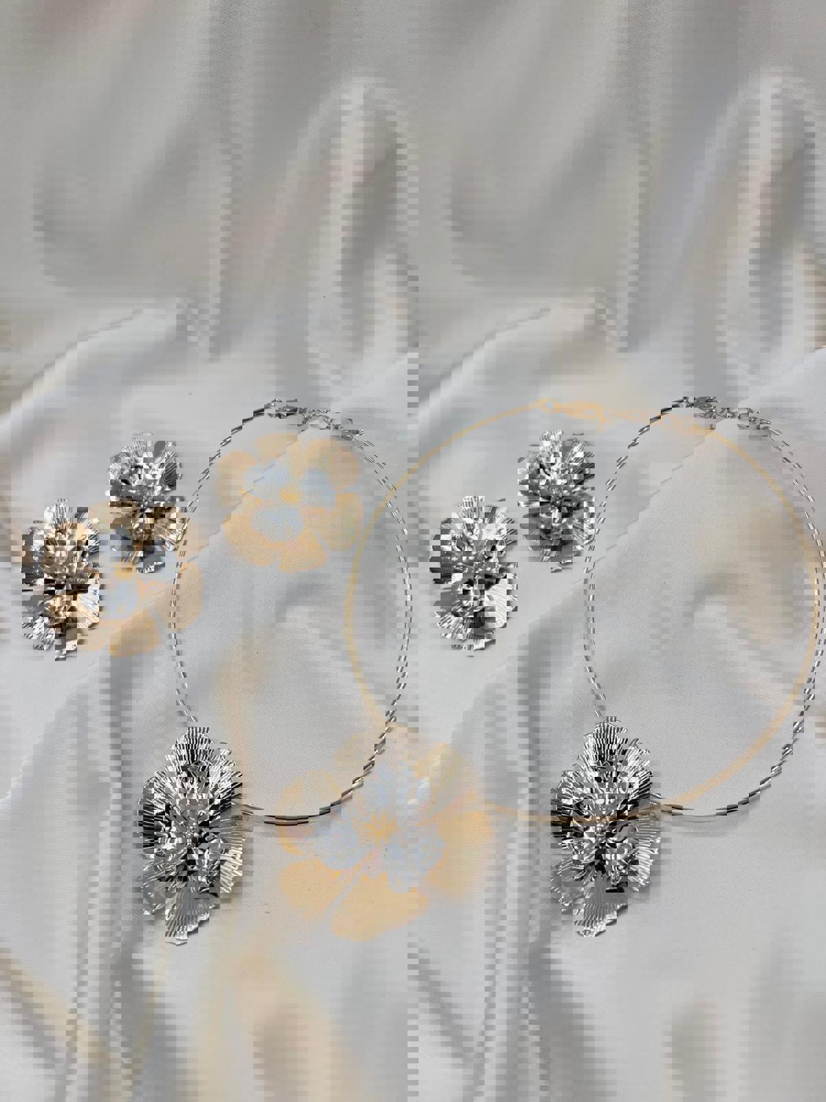 - Hafif ve şık tasarımıyla dikkat çeken bu İthal marka model çiçek kolye küpe setiniz, günlük kullanımda rahatlık ve zarafeti bir arada sunar.
