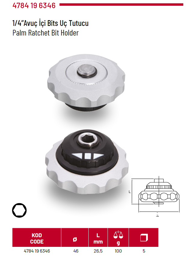 İzeltaş 4784 19 6346 1/4”Avuç İçi Bits Tutucu