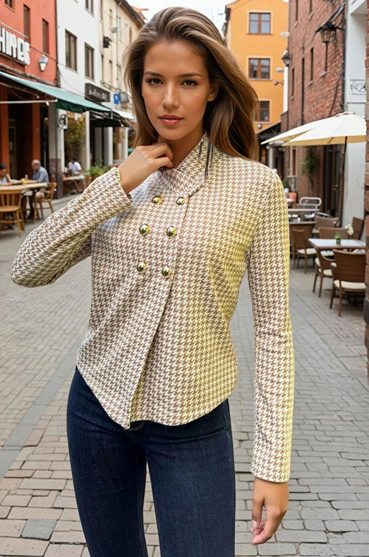 Kadın Dik Yaka İnce Baharlık Şık Tarz Jakar Örme Ceket (Astarsız) 3512230