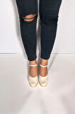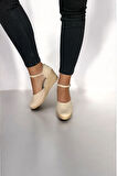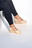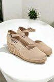 Kadın Espadril Sandalet – Keten Kumaş, Dolgu Topuk, Açık Topuk