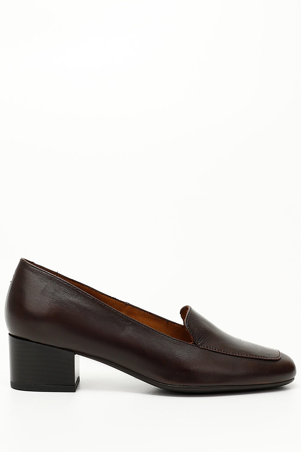 KAHVE ANTİK Gön Hakiki Deri Küt Burun Kısa Kalın Topuklu Kadın Ayakkabı 13312