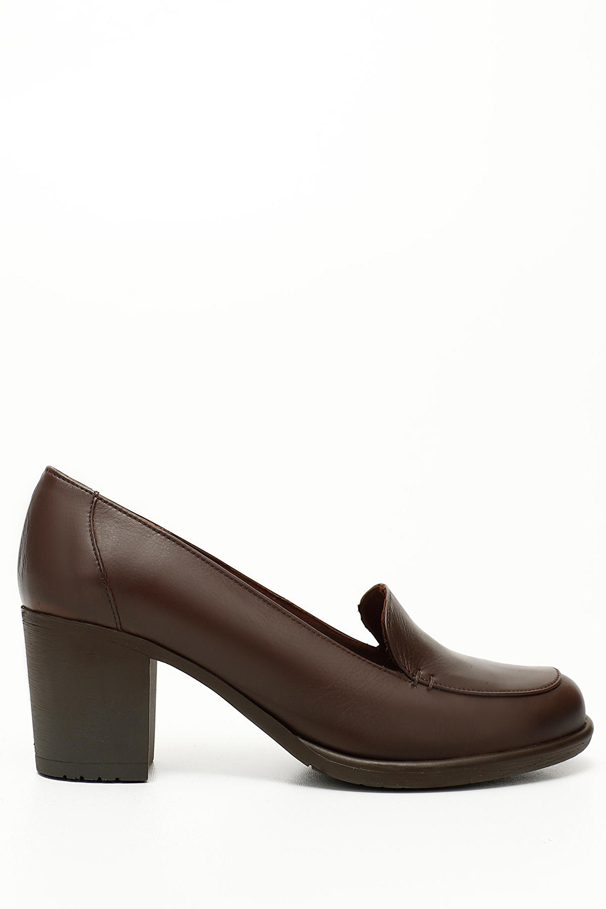 KAHVE ANTİK Gön Hakiki Deri Yuvarlak Burun Kalın Orta Topuklu Kauçuk Taban Kadın Ayakkabı 24070