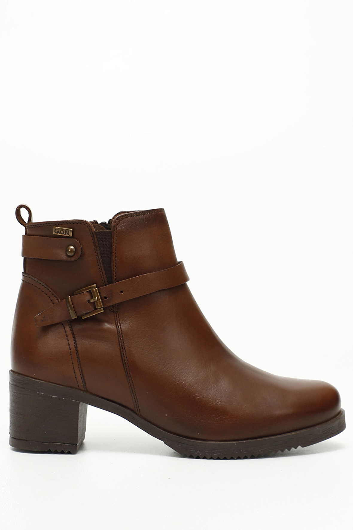KAHVE ANTİK Gön Hakiki Deri Yuvarlak Burun Topuklu Fermuarlı Tokalı Kadın Günlük Bot 48491