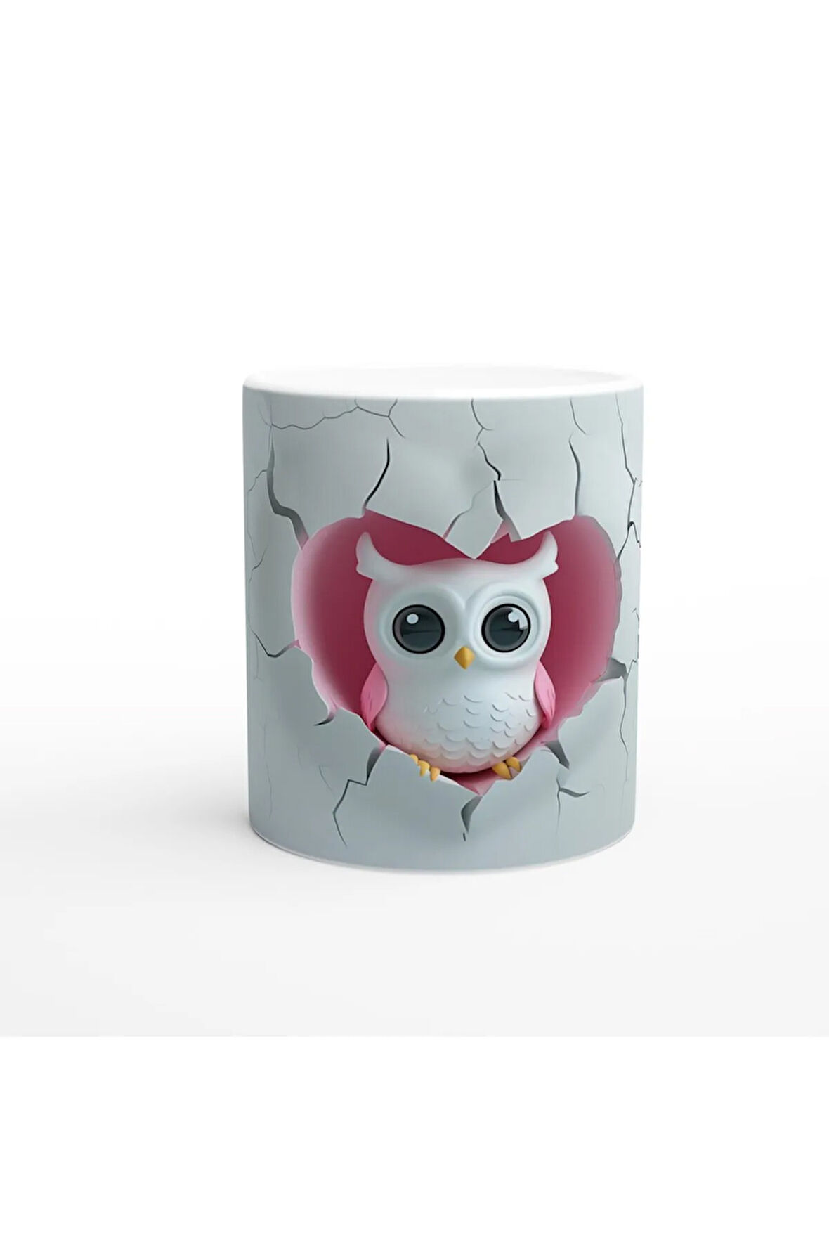 Kalpli Pembe Baykuş Figürlü Baskılı Kupa Bardak