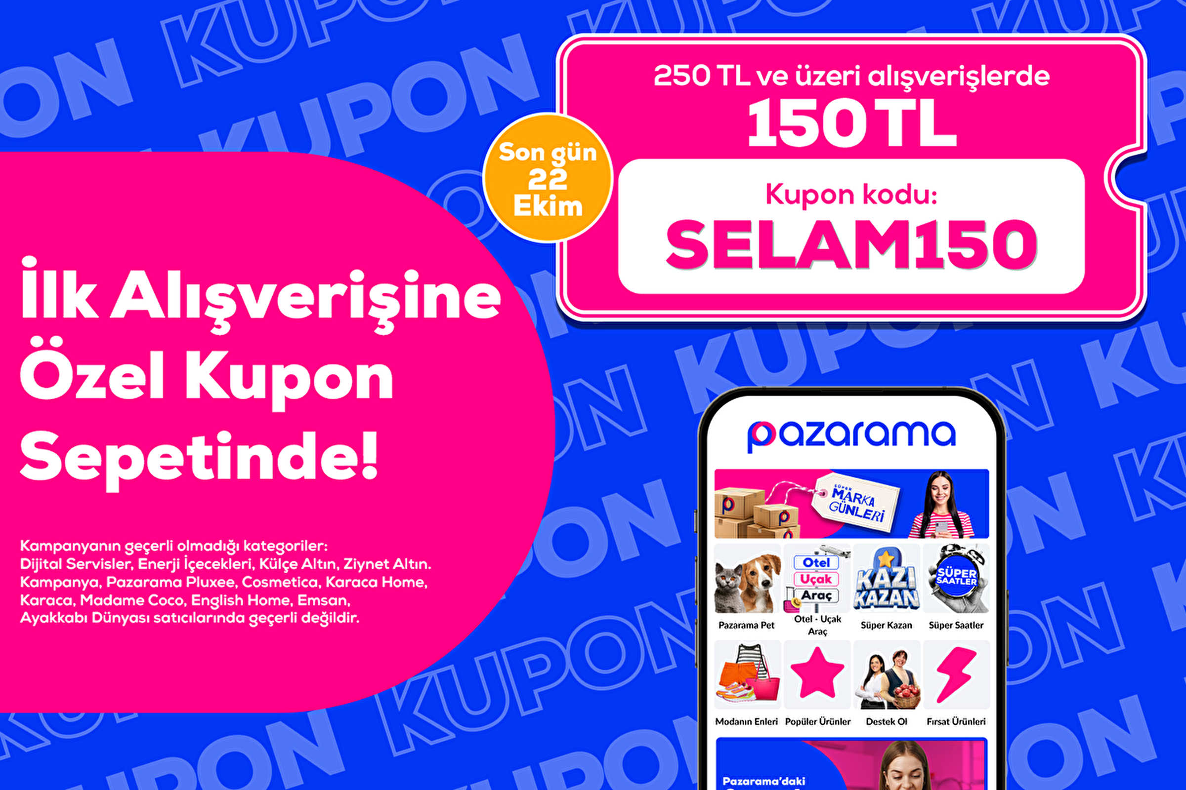 SELAM150 Kupon Kodu ile İlk Alışverişinde 250 TL ve üzeri alışverişe 150 TL İndirim Seni Bekliyor!