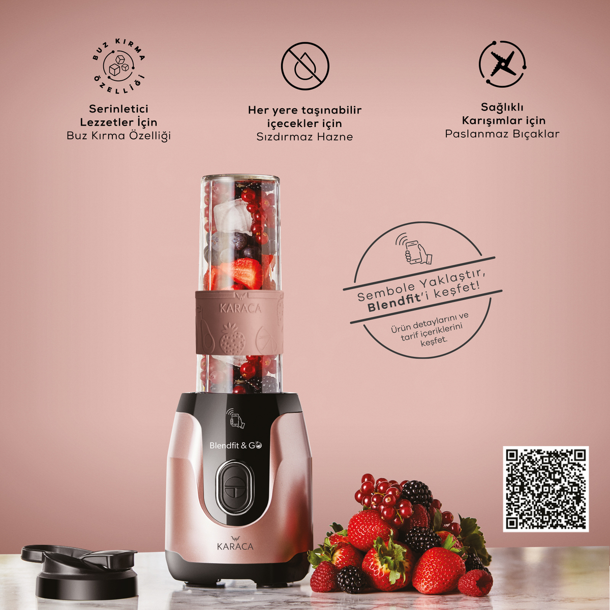 Karaca Blendfit Go Personal Kişisel Smoothie Blender ile lezzetli karışımlar hazırlamak çok kolay. Üstelik sızdırmaz haznesi sayesinde yanınızda taşıyabiliyor olmanız da çok pratik. Sağlıklı, lezzetli ve eğlenceli içecekler hazırlayabilmenin yanı sıra buz kırma özelliği sayesinde serinletici içecekler de yapabilirsiniz. Bu paslanmaz çelik dört bıçaklı blender, uzun yıllar kullanılabilecek dayanıklılığa sahiptir ve son derece pratiktir. Sebze ve meyve blenderi olarak da tercih edebileceğiniz bu kişisel blender ile artık içecekleriniz çok daha sağlıklı çok daha lezzetli!