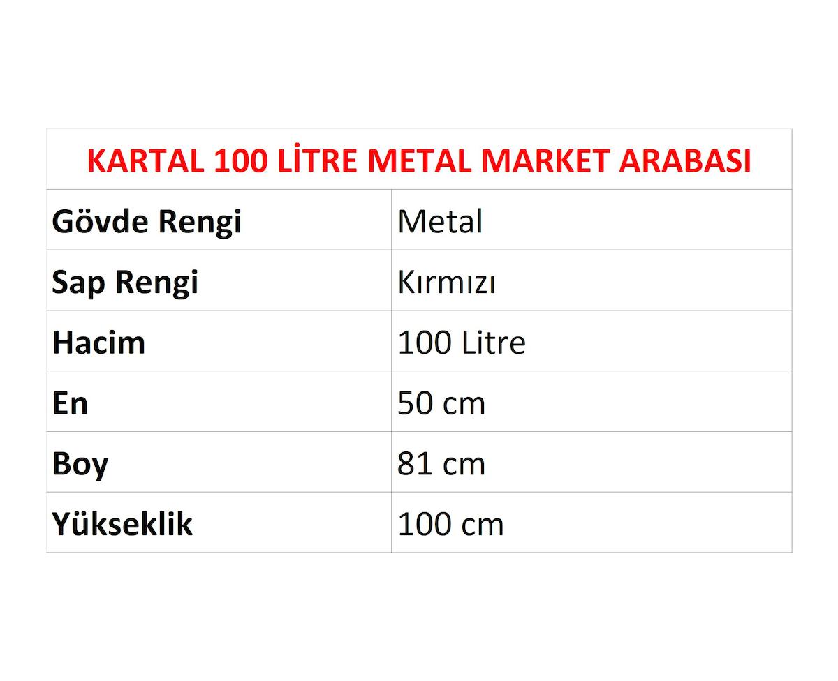 Kartal 100 Litre Metal Market Arabasının özellikleri ve açıklamaları aşağıda verilmiştir. Farklı ölçü seçenekleri ve daha fazla bilgi için mağazamızı ziyaret edebilirsiniz.