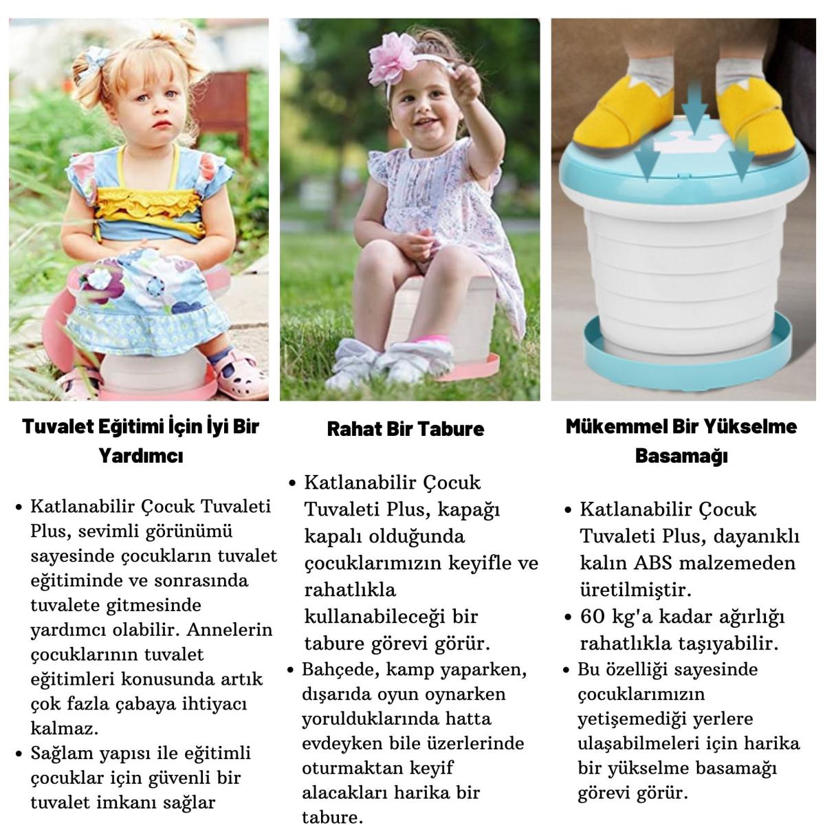 Çok fonksiyonludur , sevimli şekli çocukların ilgisini çekerek tuvalet eğitimlerini daha kolay tamamlamaları konusunda annelere yardımcı olurken aynı zamanda çocuklar için tabure ve uzanma basamağı olarak da kullanılabilir.