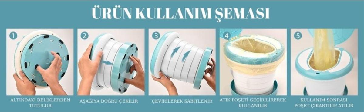 Hızlı şekilde katlanır ve açılır. İçerisine yerleştirilen atık poşetleri sayesinde saniyeler içinde temizlenir ve hijyenden ödün vermez.
