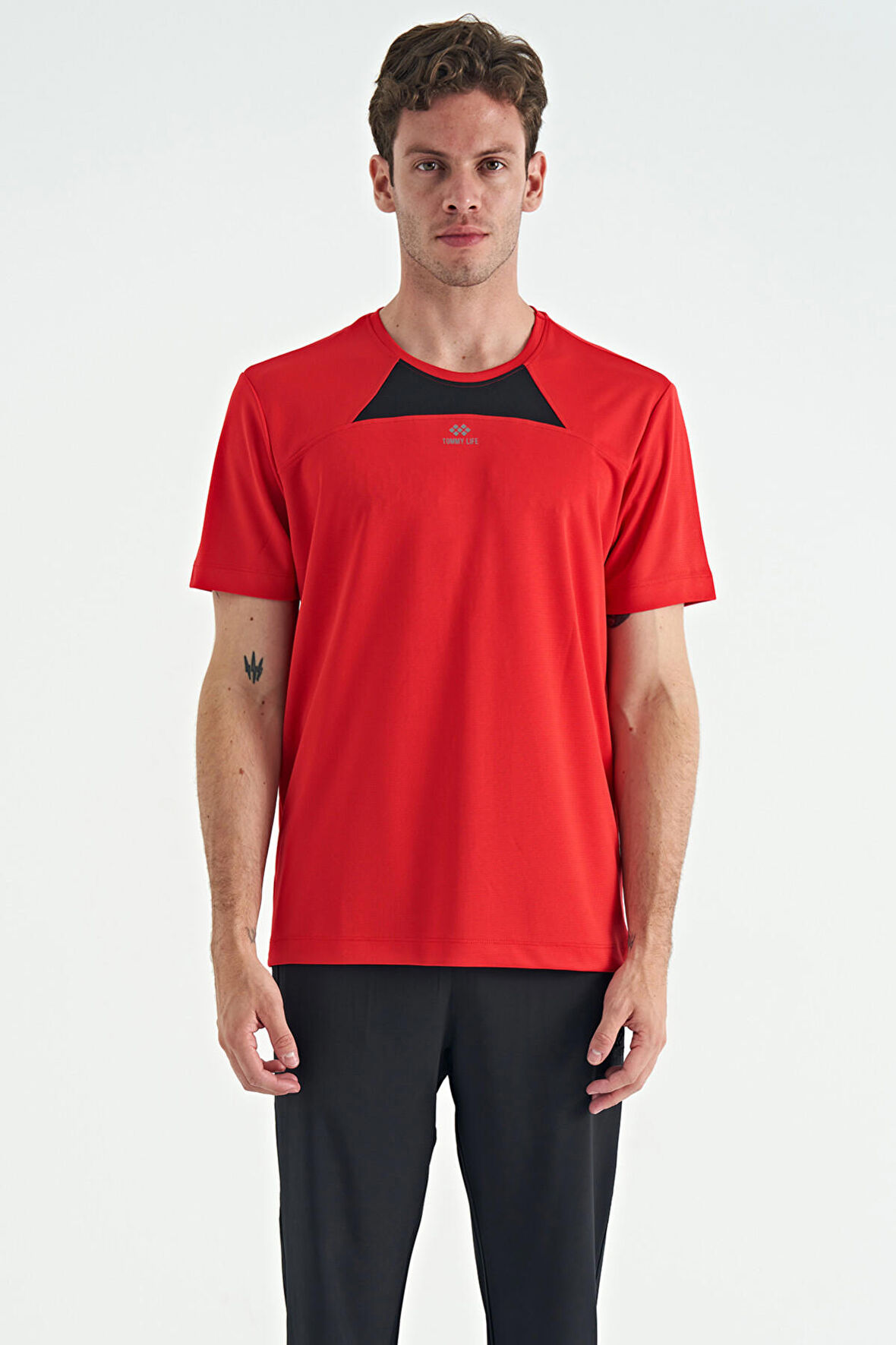 Kırmızı O Yaka Standart Kalıp Garni Detaylı Aktif Spor Erkek T-Shirt - 88253 | XL