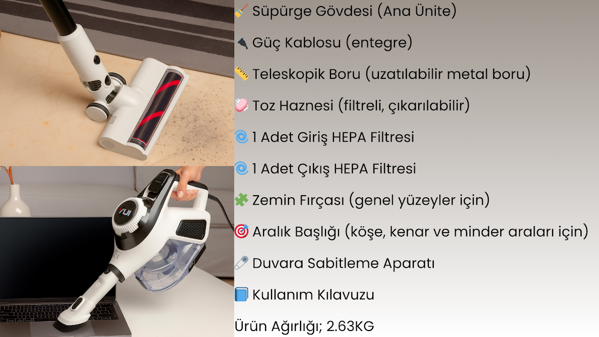 Ks16 2'si 1 Arada Ac Motor Toz Torbasız Hepa Filtreli Dikey Elektrikli Süpürge;