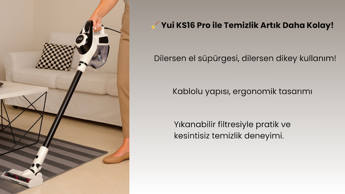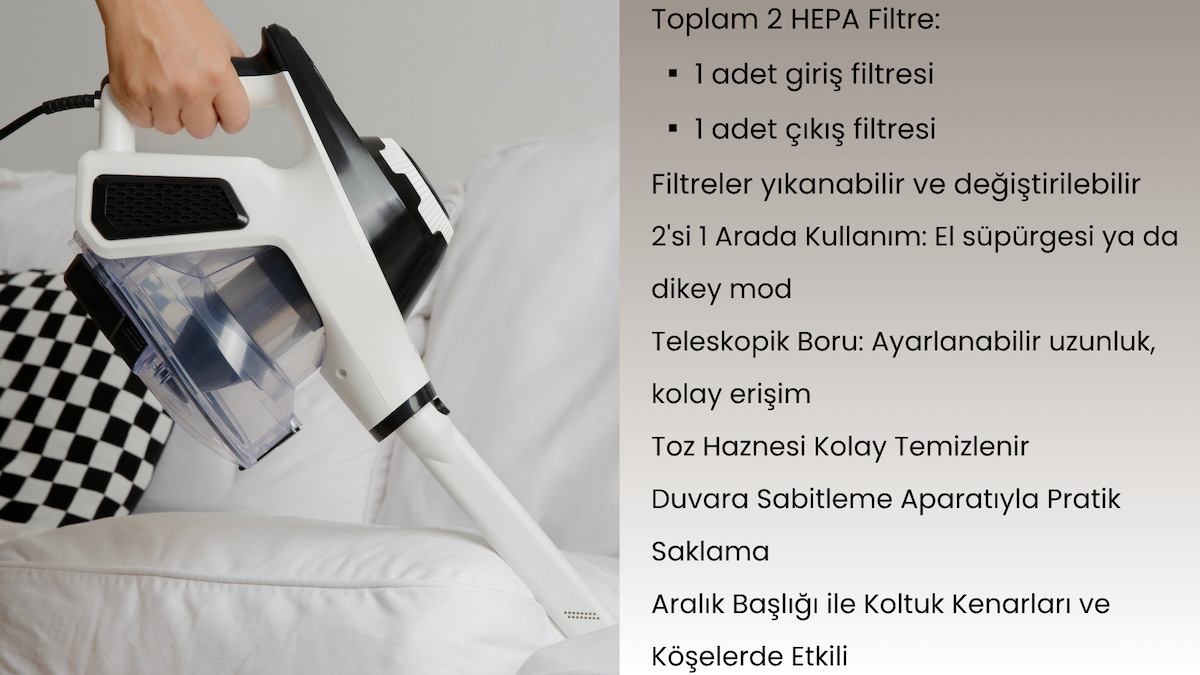 Ks16 2'si 1 Arada Ac Motor Toz Torbasız Hepa Filtreli Dikey Elektrikli Süpürge