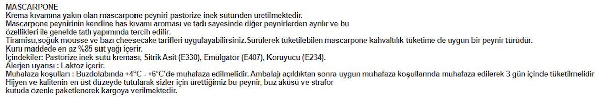 Lente Mascarpone Peyniri 350gr