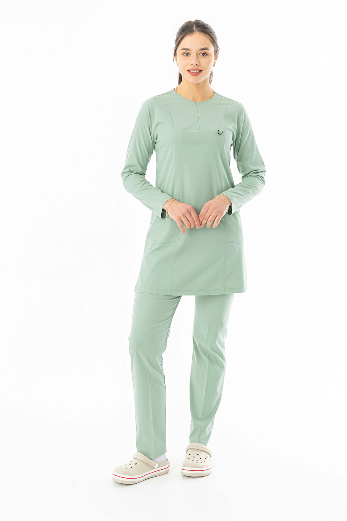 Likra Uzun Kol Doktor Hemşire Forması Alt Üst Takım Küf Yeşili (LTST20020)