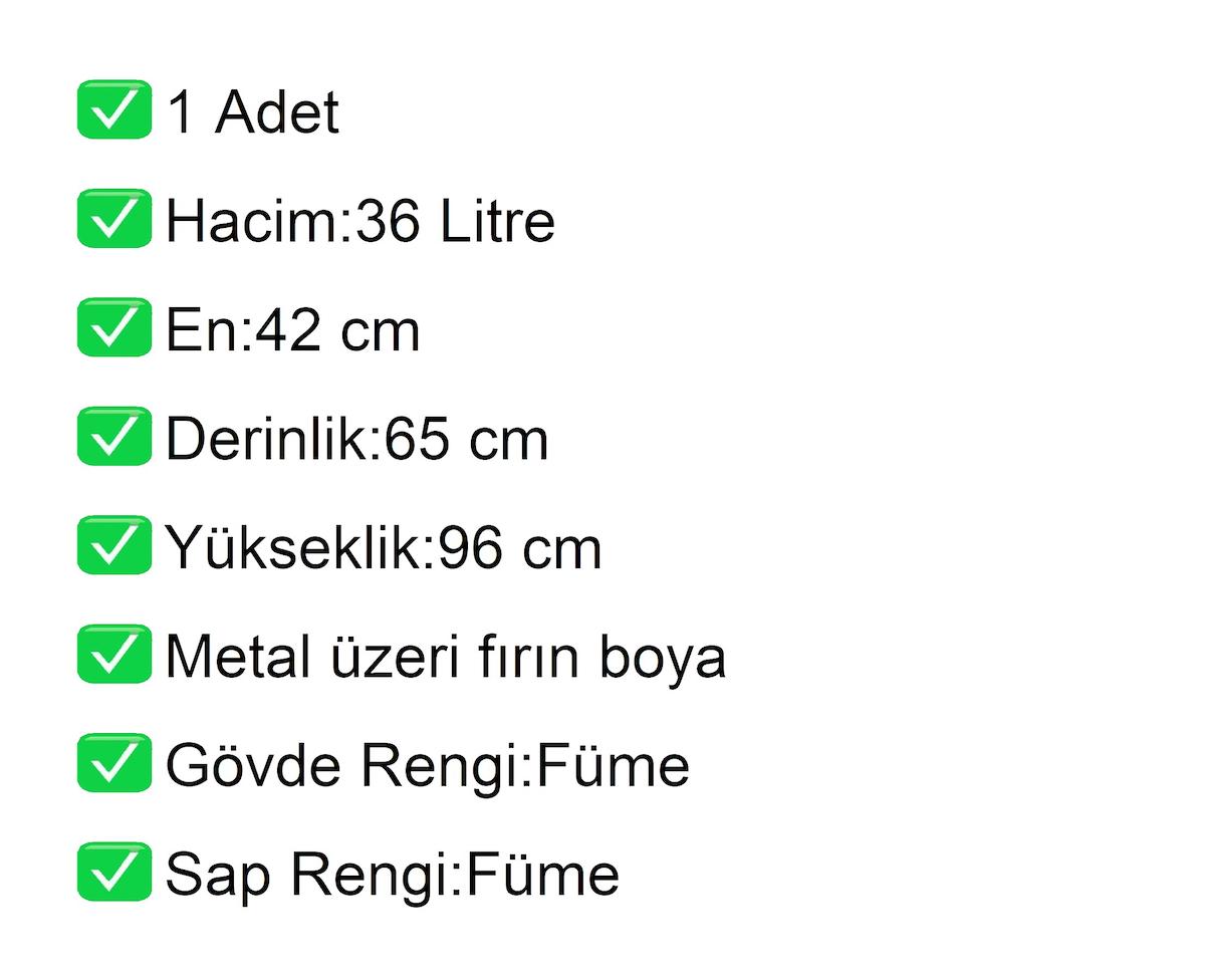 MA36 metal market arabası 36 litre olarak üretilmektedir. Sap ve gövde rengi standart olarak füme renkte sunulan MA36 metal market arabası, özel istek doğrultusunda farklı renk ve ölçülerde üretilebilmektedir. MA36 metal market arabasının sap kısımlarını özel istek doğrultusunda firma mağaza logonuz ile baskılı alma seçeneği de bulunmaktadır.