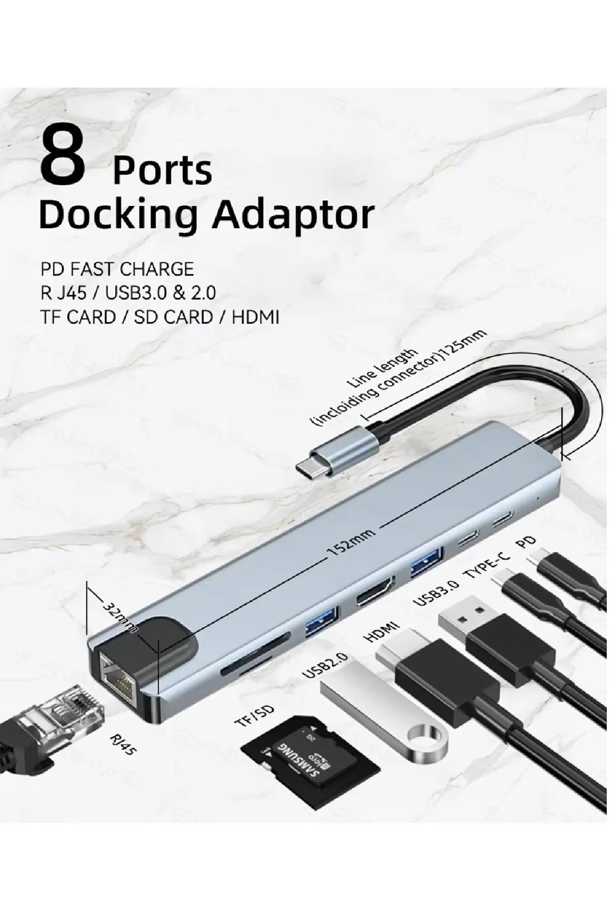 USB-C portundan çok daha fazlasını sunan bu 8 in 1 hub, tek bir cihazla tüm bağlantı ihtiyaçlarını çözer.