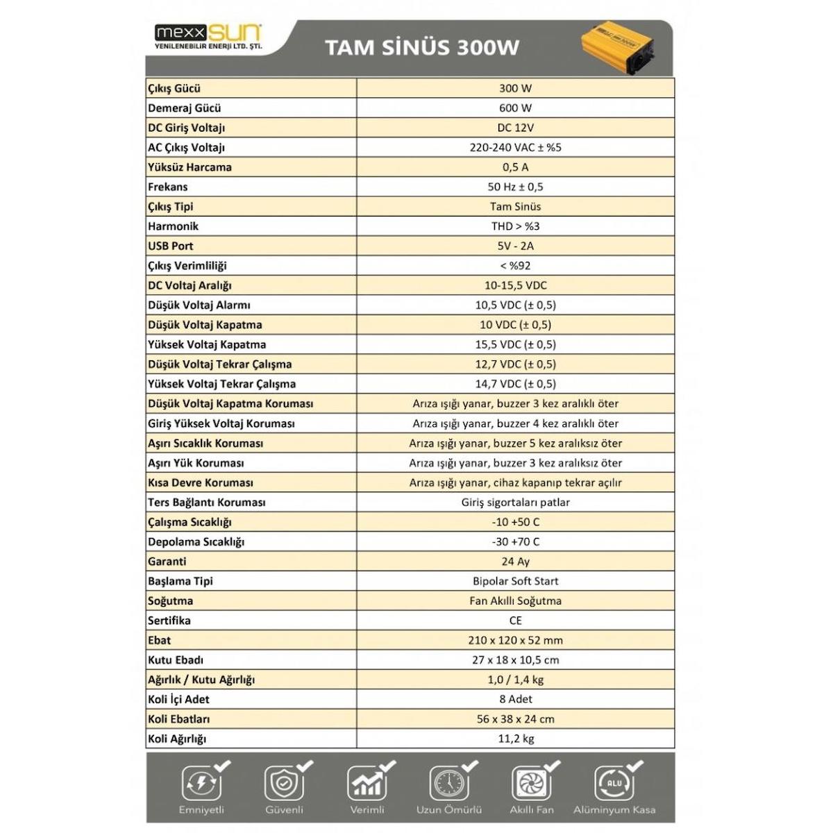 Mexxsun Tam sinüs 12V 300W İNVERTER