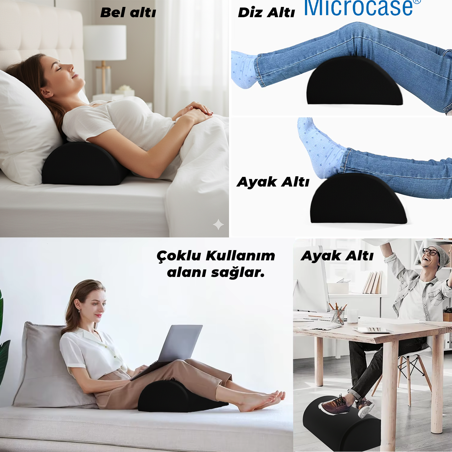 İşte karşınızda Microcase Çok Amaçlı Destek Pedi! Ergonomik yarım silindir tasarımıyla vücudunuzun ihtiyaç duyduğu desteği tam olarak sunarak ağrılarınıza veda etmenizi ve günün her anını daha konforlu geçirmenizi sağlıyor.