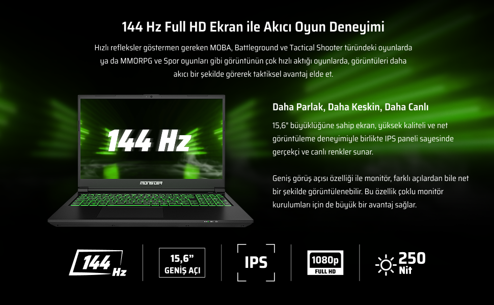 Monster Abra A5 V21.7.2 Intel Core i7 13700H 32 GB 1TB SSD RTX 3050 FreeDos 15,6" 144 Hz Oyun Bilgisayarı